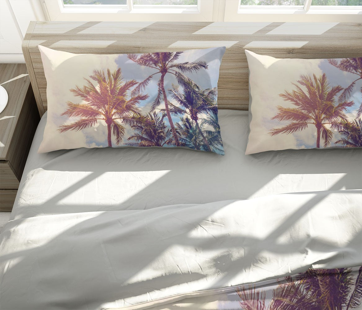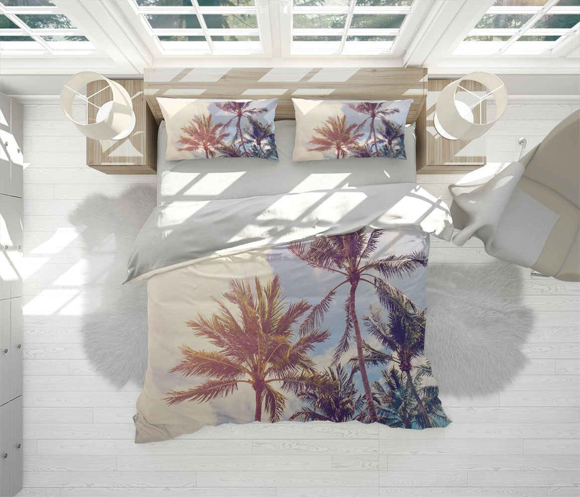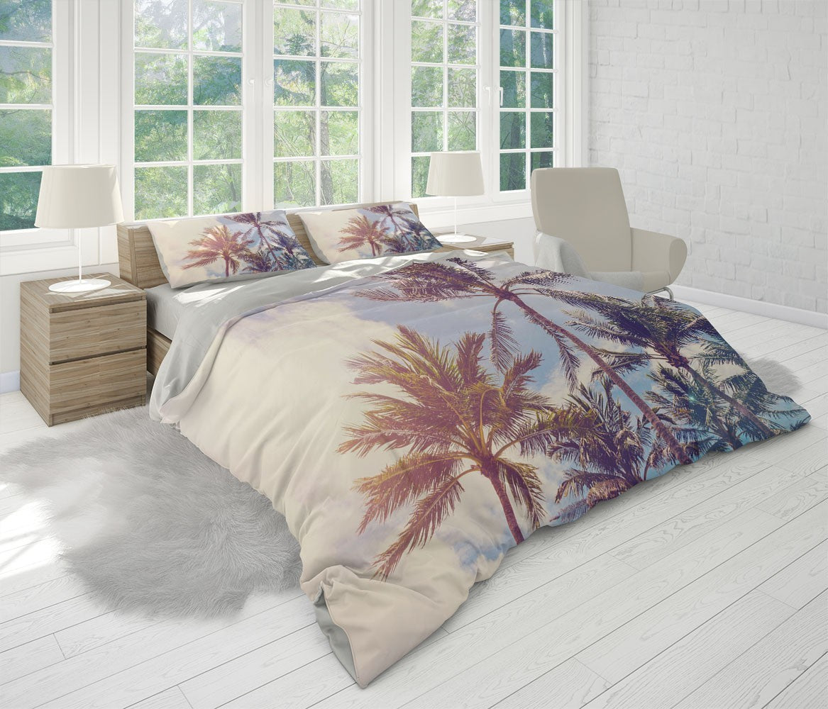 Palm Trees Duvet Cover Set W Pillow Cover, Green Floral Leaves 3D Quilt Cover, Single Double Queen King Size Doona Cover