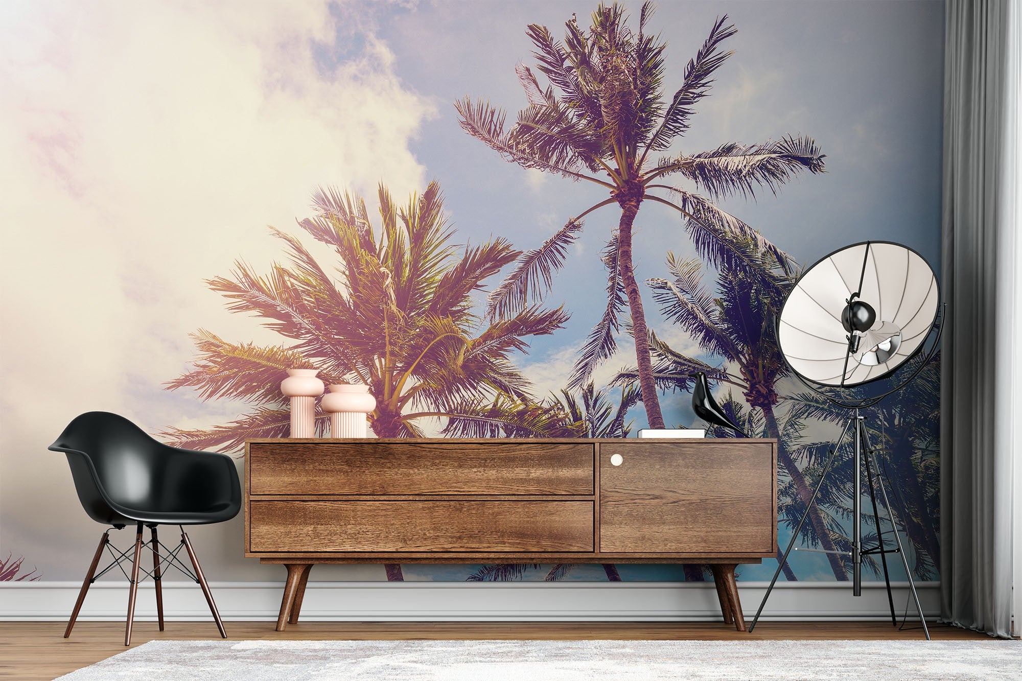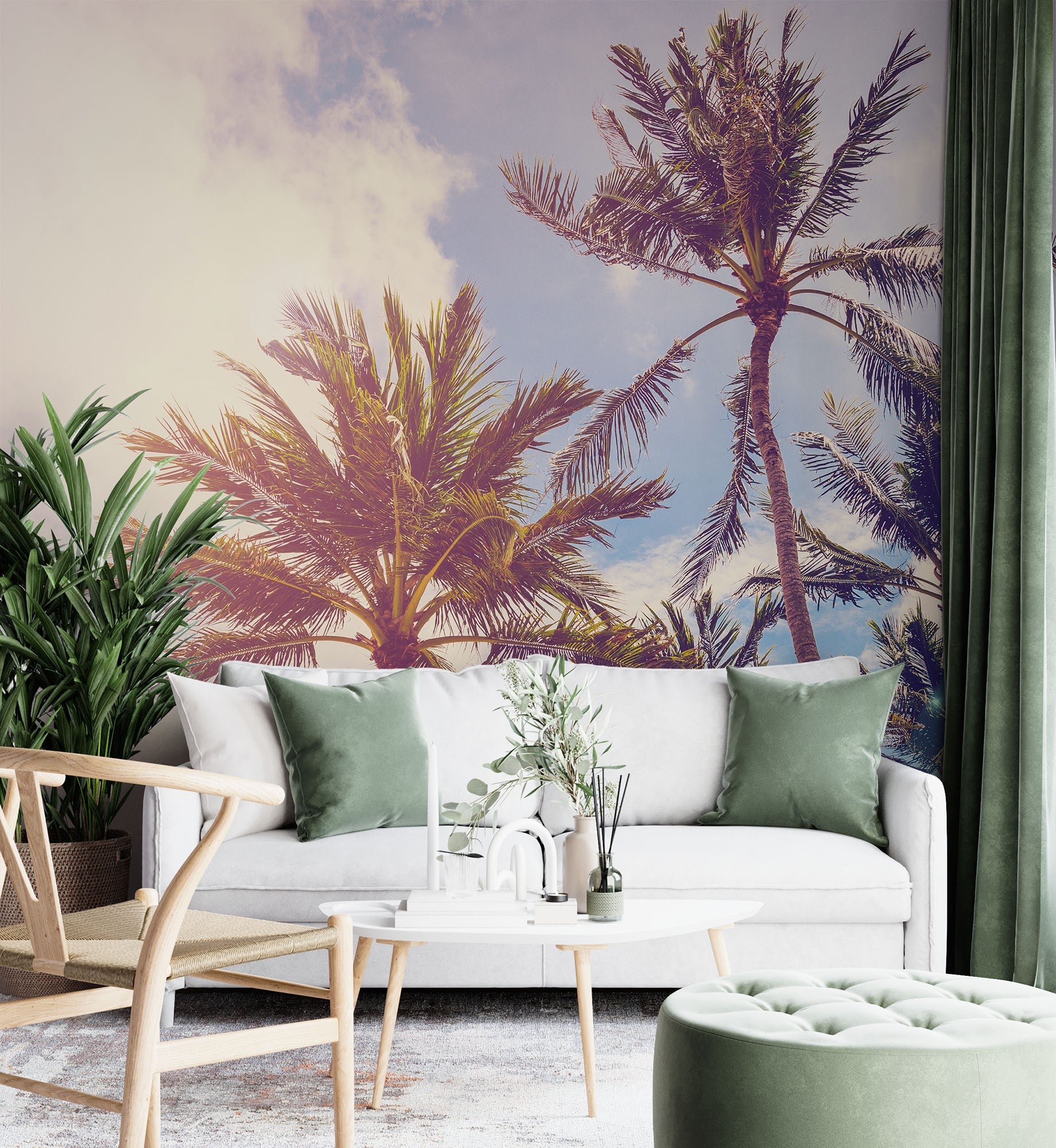 Palm Trees Floral Leaves Green Wallpaper Mural