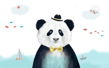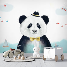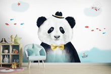 Panda With Hat Kids Art For Kids Black And White Wallpaper Mural
