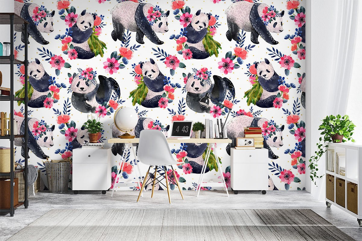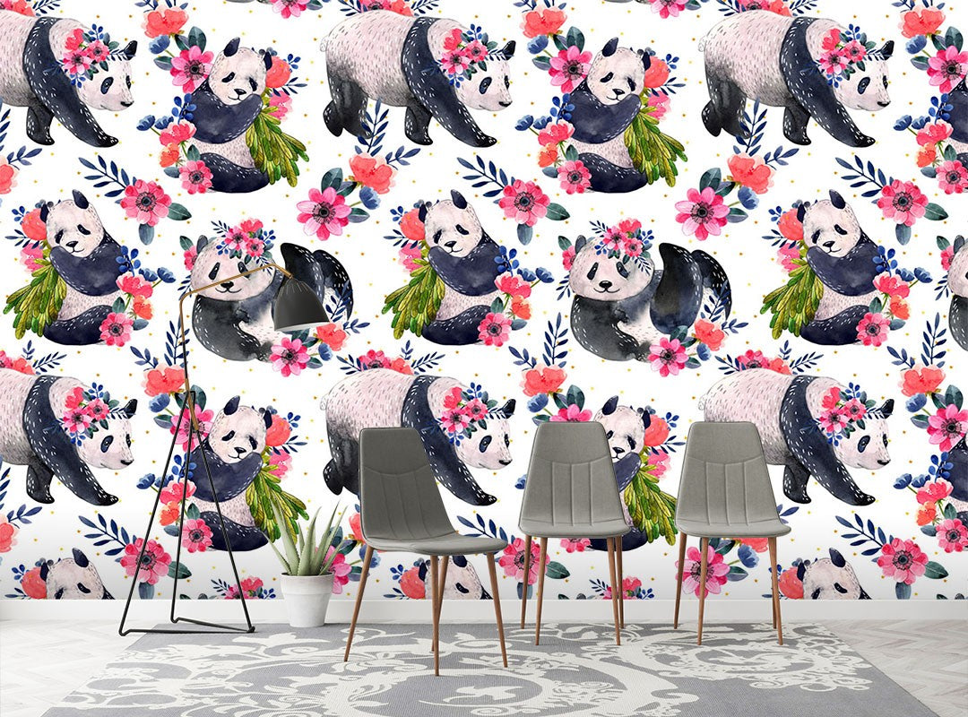 Pandas Animals Wild Animals Bright Wallpaper Mural,Self-Adhesive Peel And Stick 3D Wall Paper,Removable Designer Wall Decor