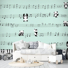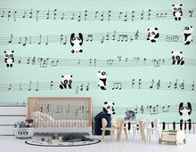 Pandas Music Kids Cartoon Creamy Wallpaper Mural,Self-Adhesive Peel And Stick 3D Wall Mural,Designer Removable Wall Decor