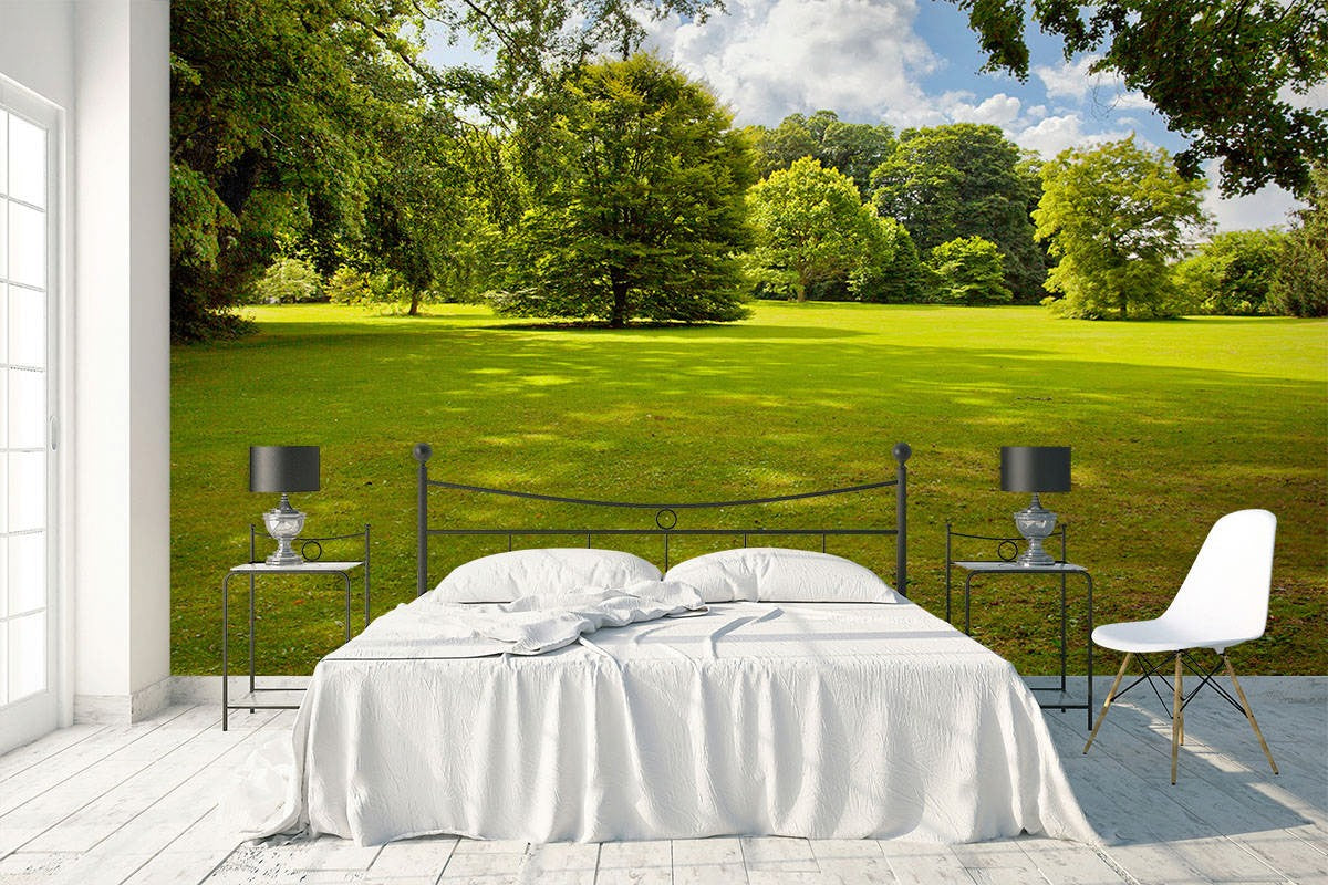 Park Meadow Floral Gardens Green Wallpaper Mural,Self-Adhesive Peel And Stick 3D Wall Decal,Australian Company Wall Decor