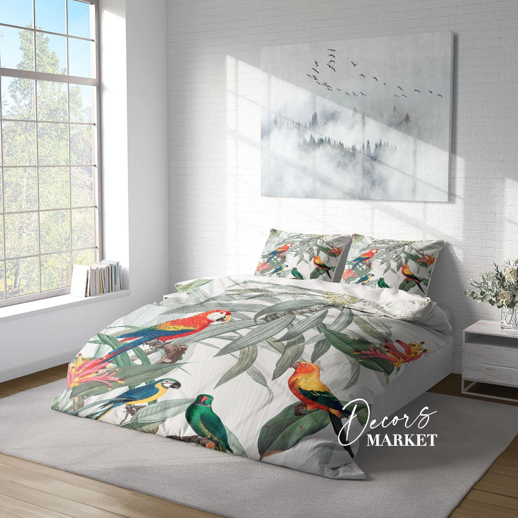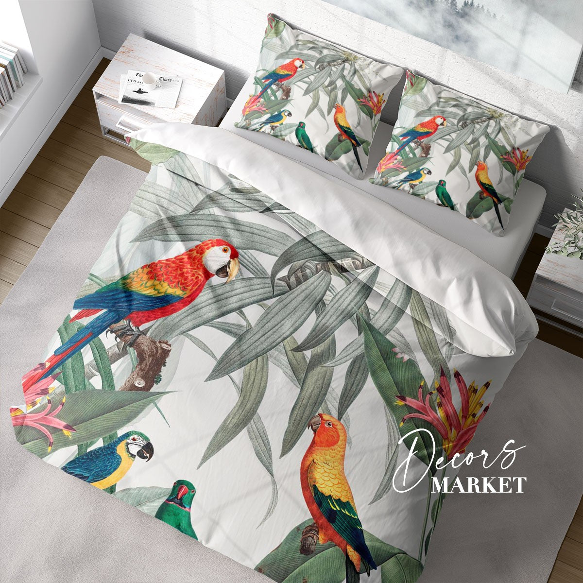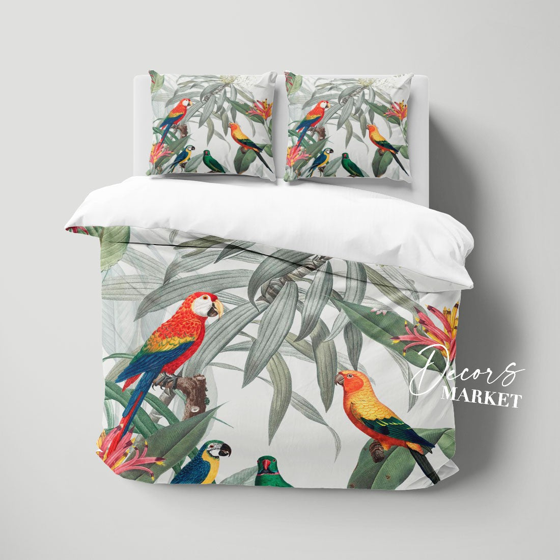 Parrots Branches Duvet Cover Set w Pillowcases, Colorful Animals Birds 3D Quilt Cover, 3pc Single Double Queen King Size Doona Cover