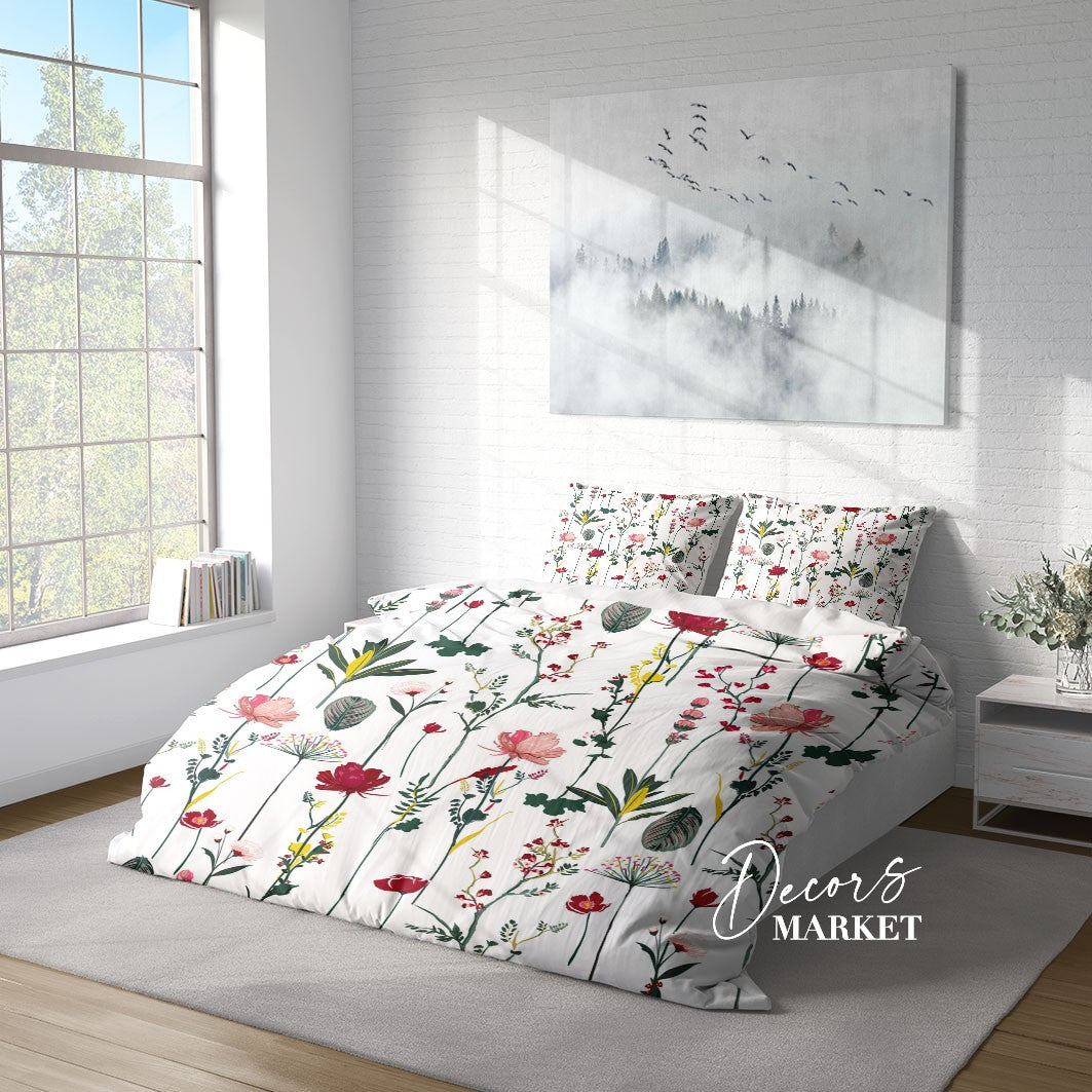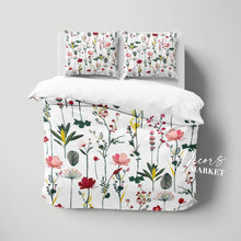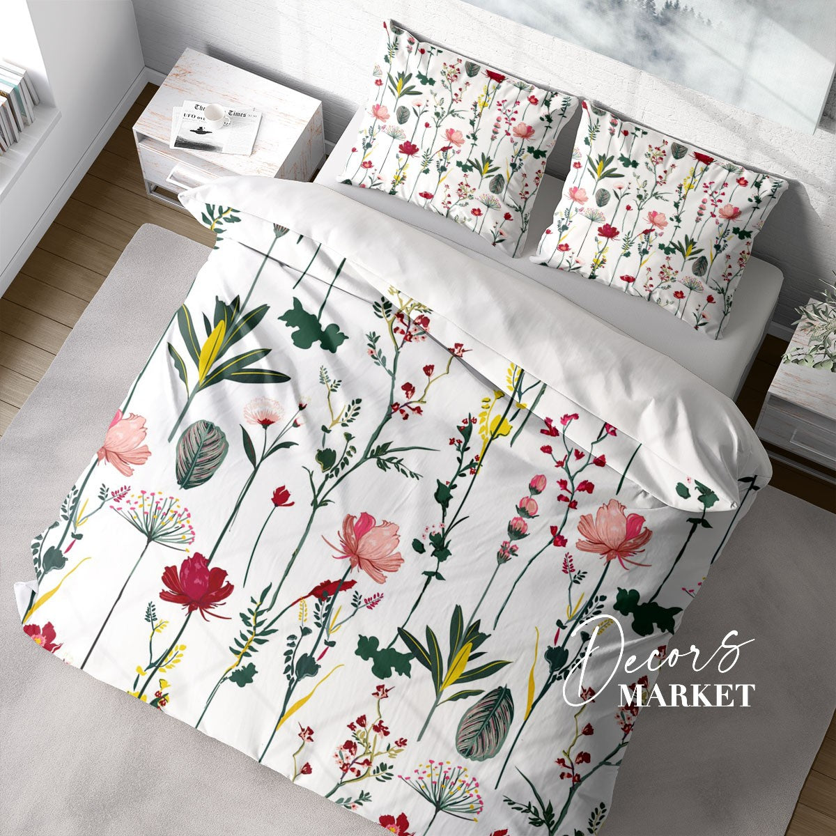 Pastel Botanical Duvet Cover Set w Pillowcases, White Floral Patterns 3D Quilt Cover, 3pc Single Double Queen King Size Doona Cover