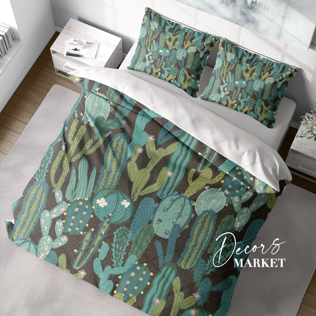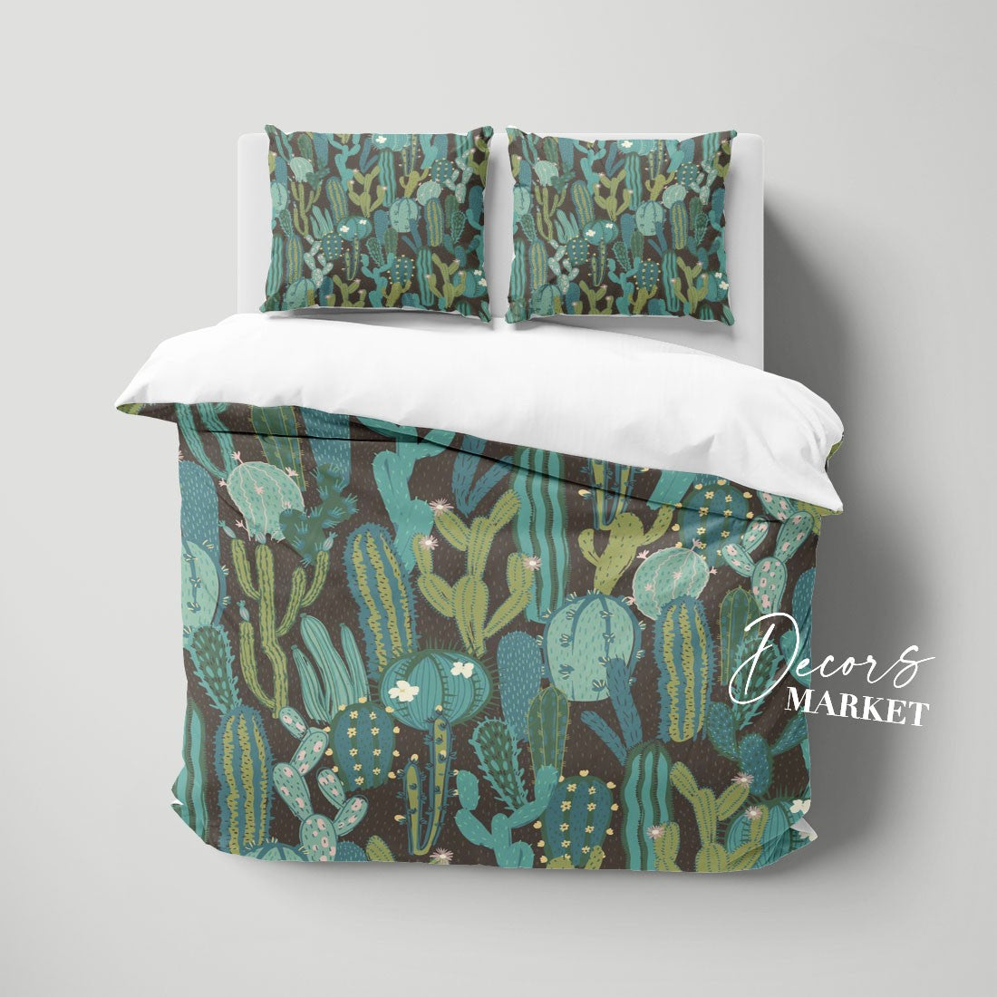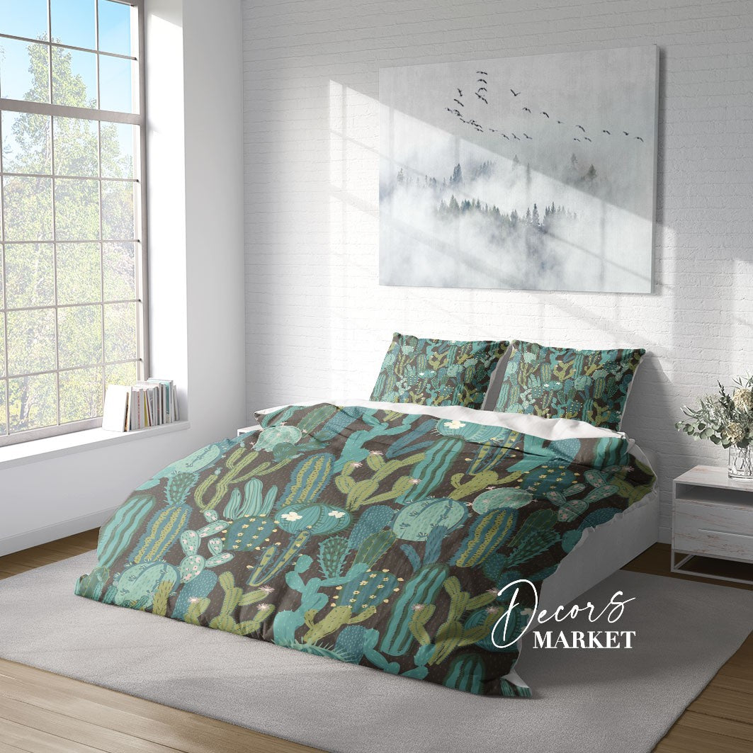 Pastel Cartoony Cactus Duvet Cover Set w Pillowcases, Green Floral Patterns 3D Quilt Cover, 3pc Single Double Queen King Size Doona Cover