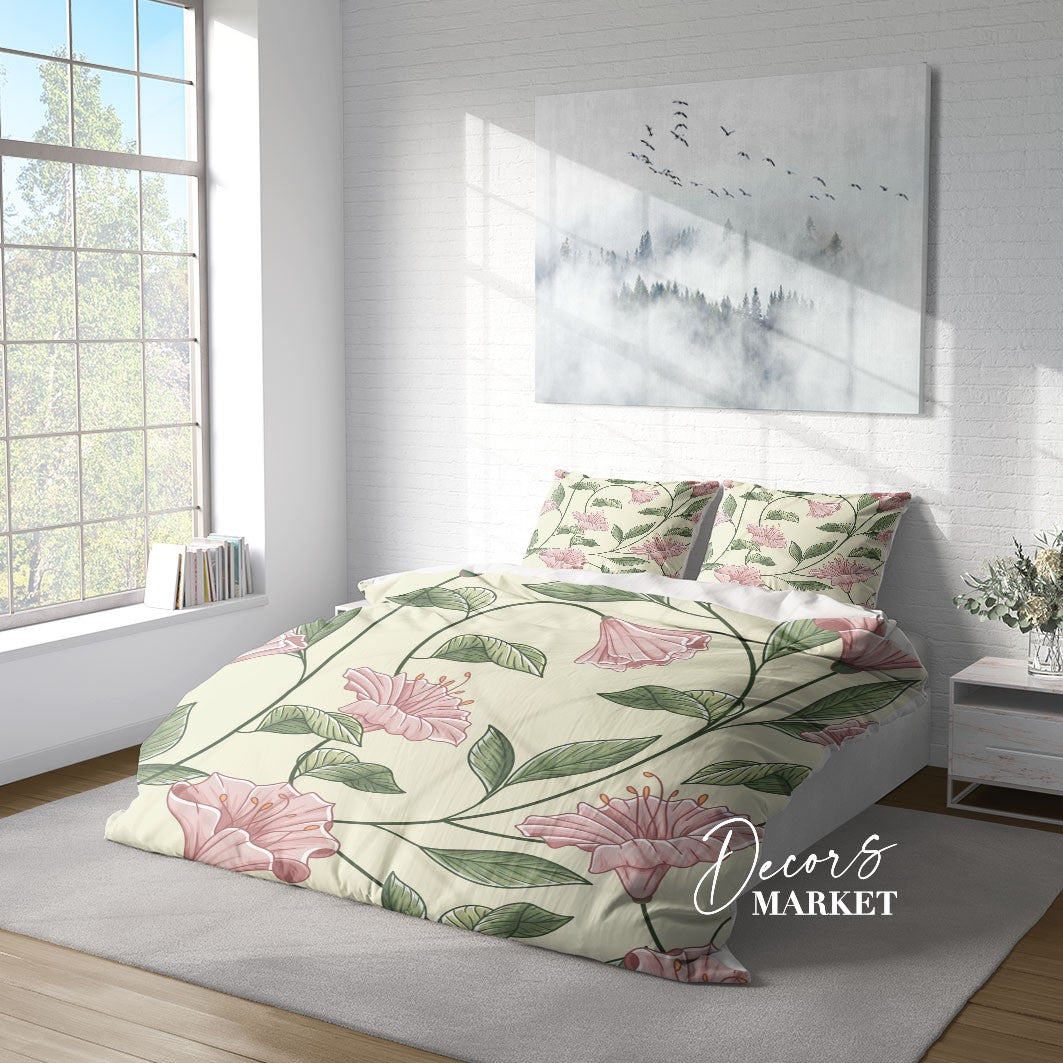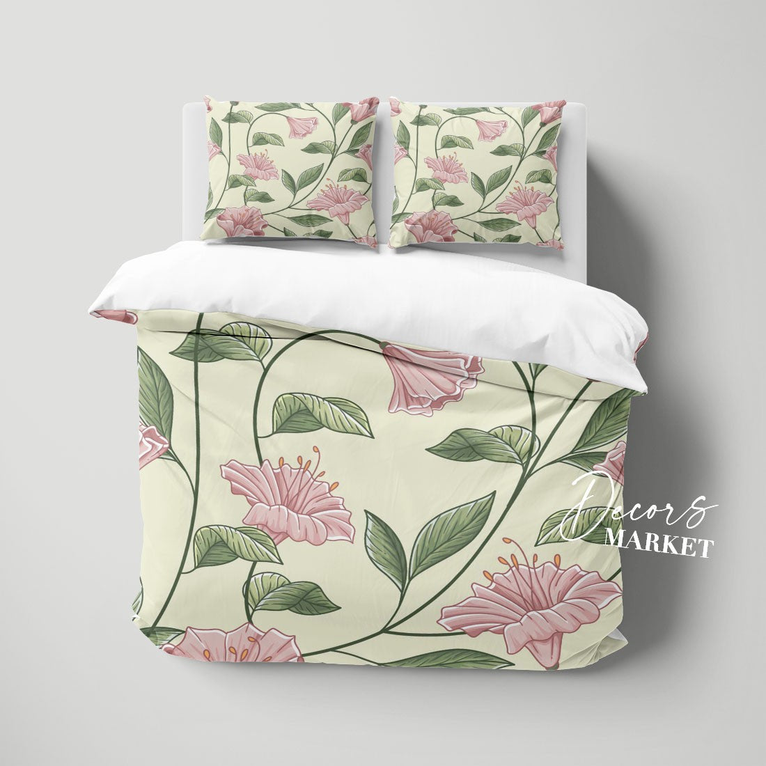 Pastel Flower Leaves Duvet Cover Set w Pillowcases, Pink Floral Patterns 3D Quilt Cover, 3pc Single Double Queen King Size Doona Cover