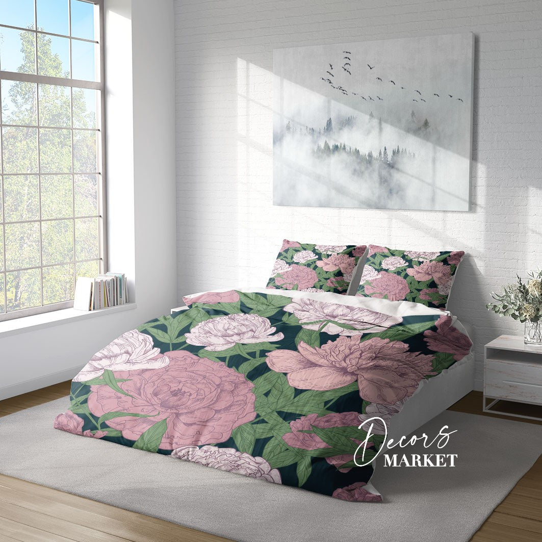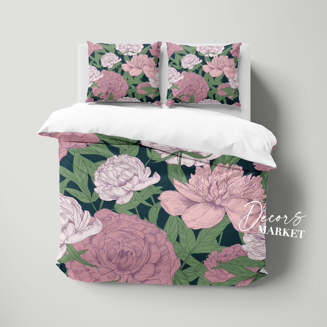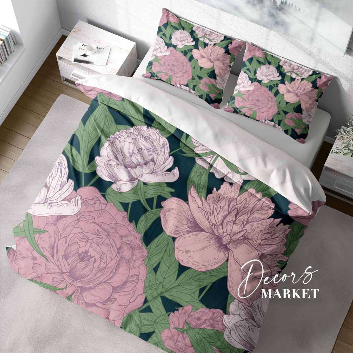Pastel Peony Leaf Duvet Cover Set w Pillowcases, Pink Floral Patterns 3D Quilt Cover, 3pc Single Double Queen King Size Doona Cover