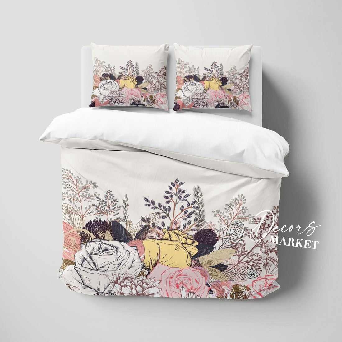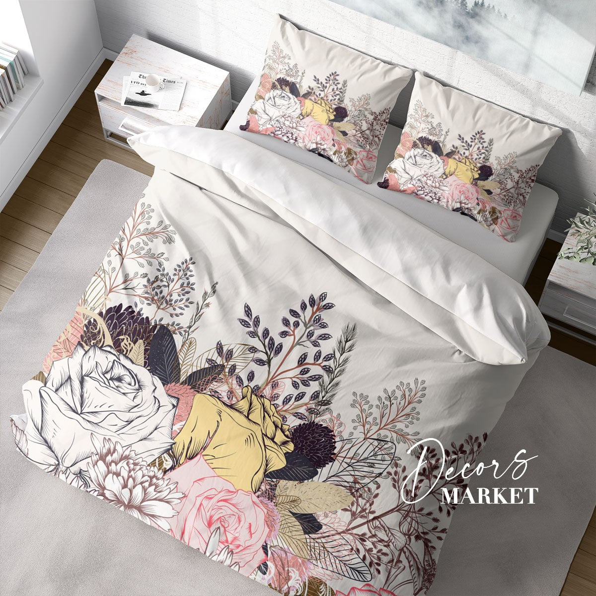 Pastel Rose Duvet Cover Set w Pillowcases, Creamy White bg Floral Flowers 3D Quilt Cover, 3pc Single Double Queen King Size Doona Cover