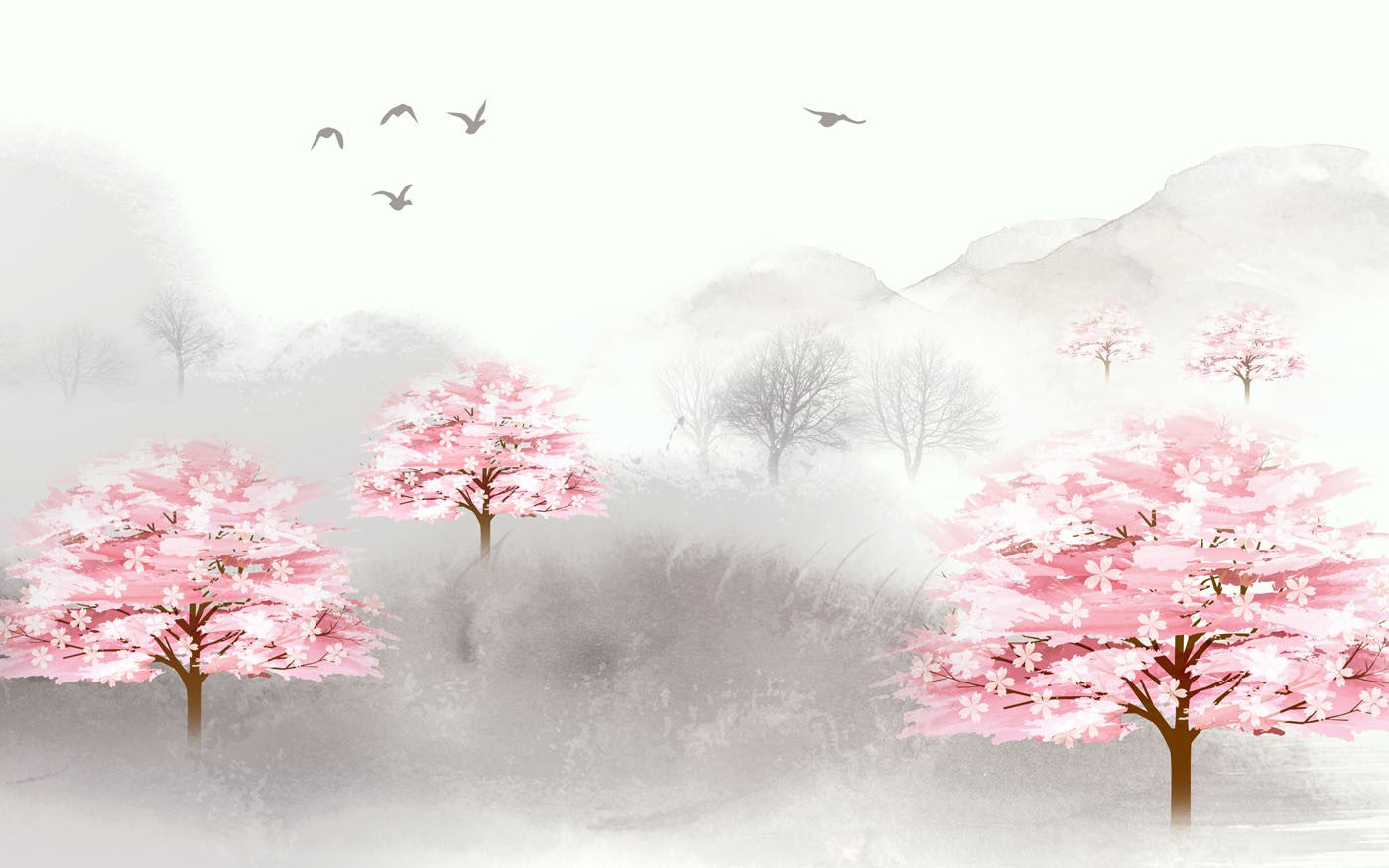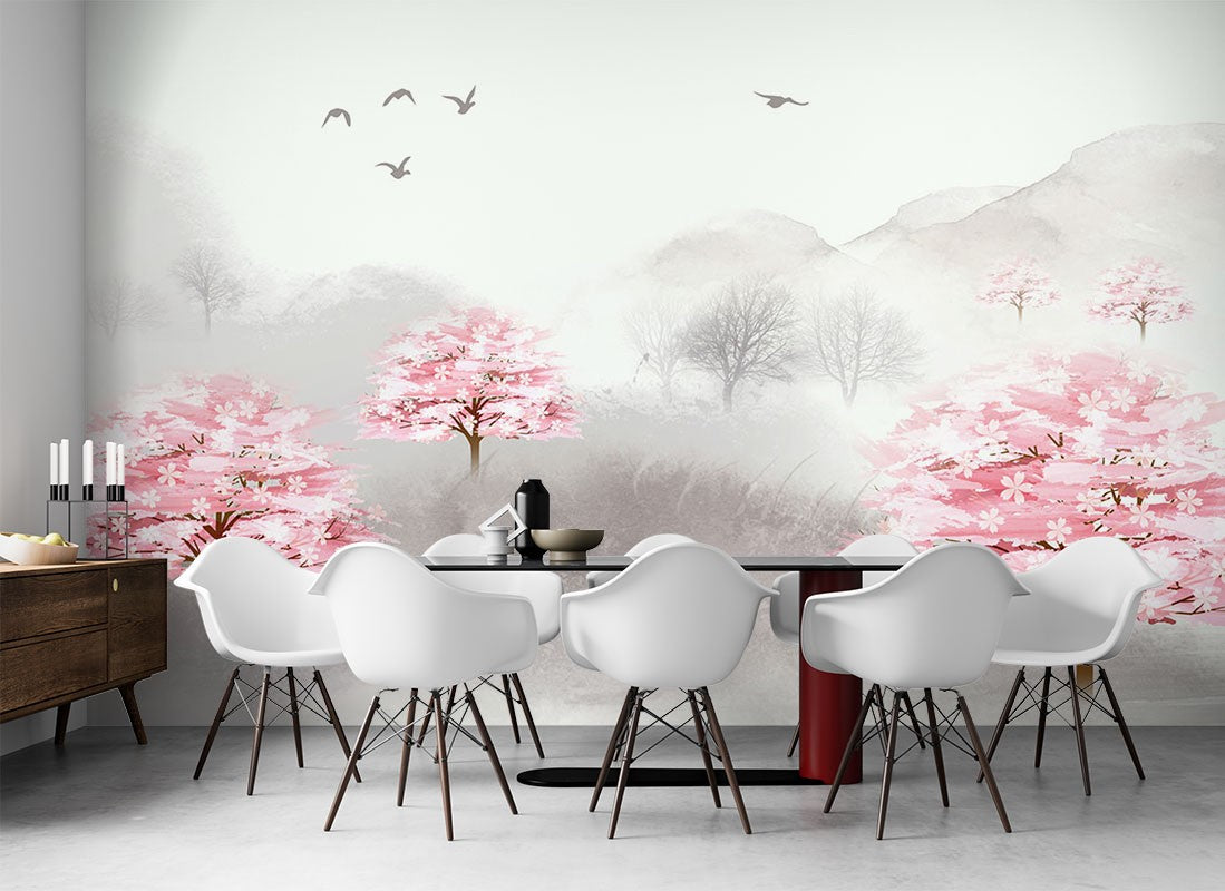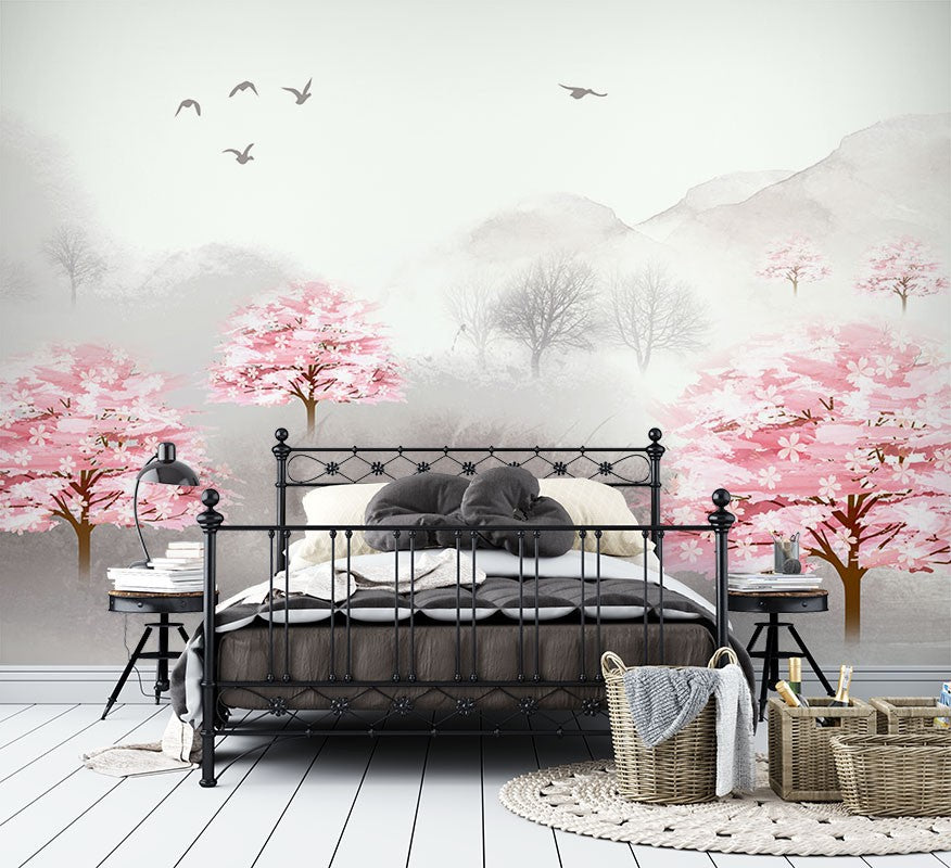 Peach Blossom Forest Plant Multicolour Wallpaper Mural,Self-Adhesive Peel And Stick 3D Wall Paper,Australian Company Bedroom Wall Decor