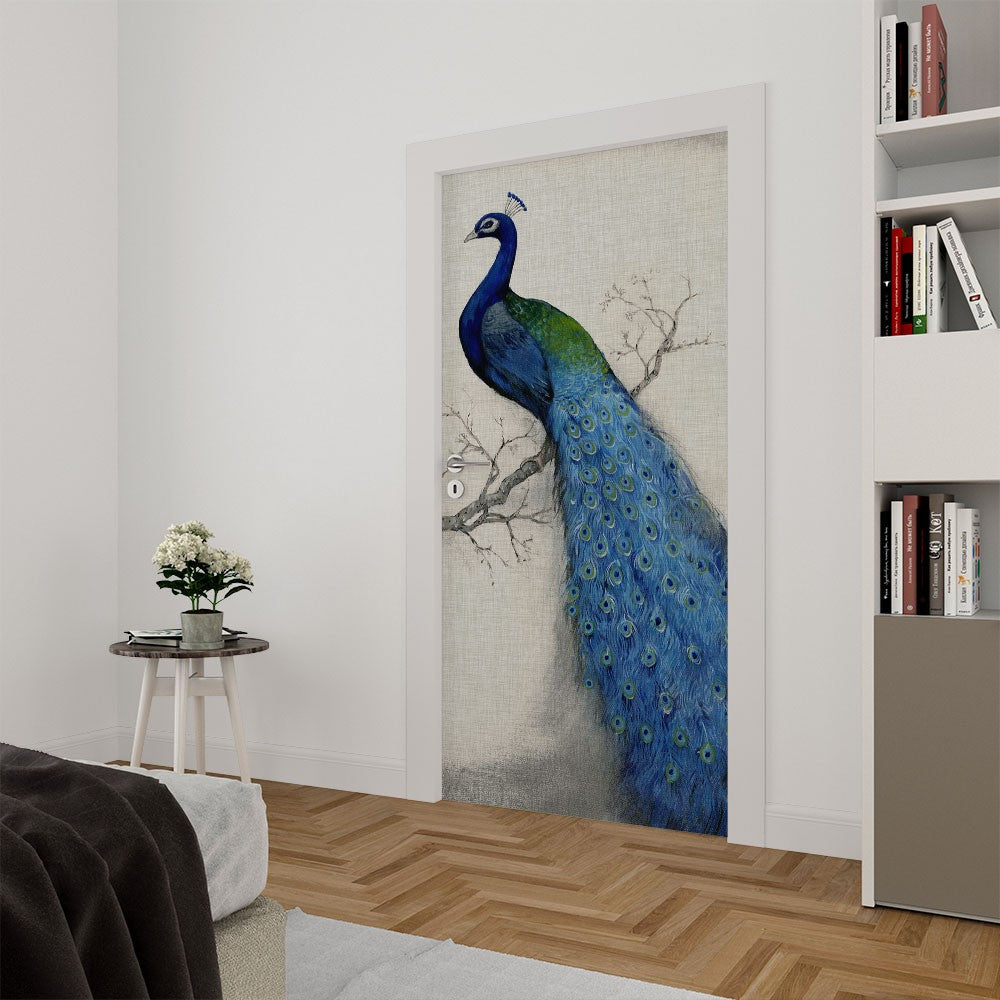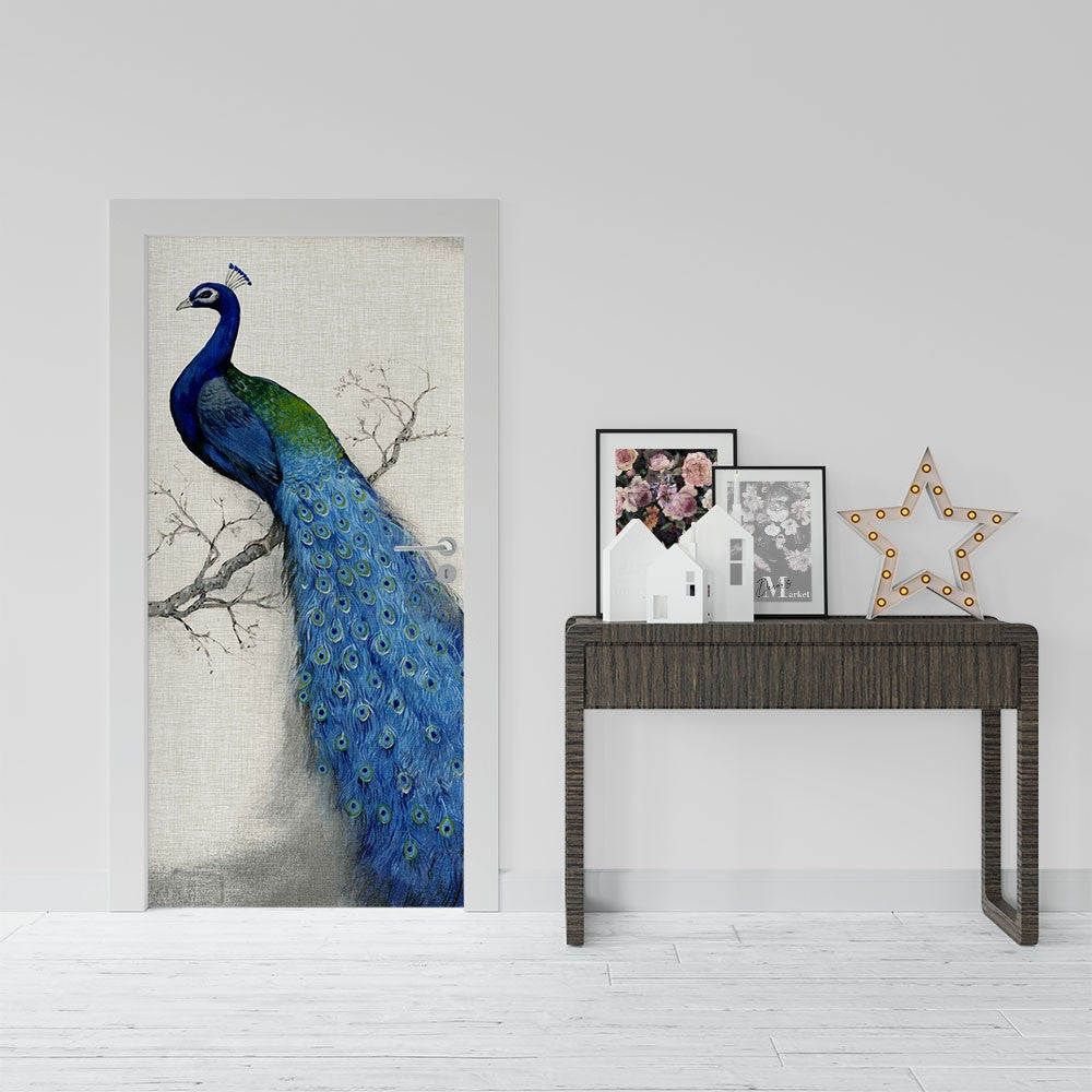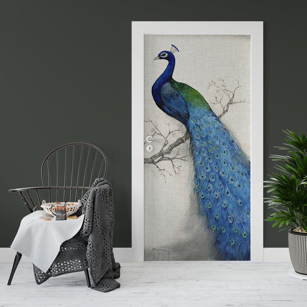 Peacock Art Chinoiserie Door Wrap, Customized Mural For Door, Door Mural Sticker, Peel And Stick Door Cover, Removable Door Decal