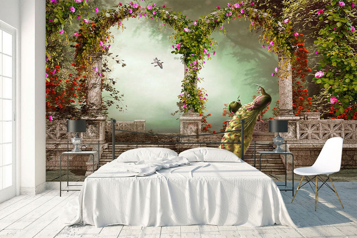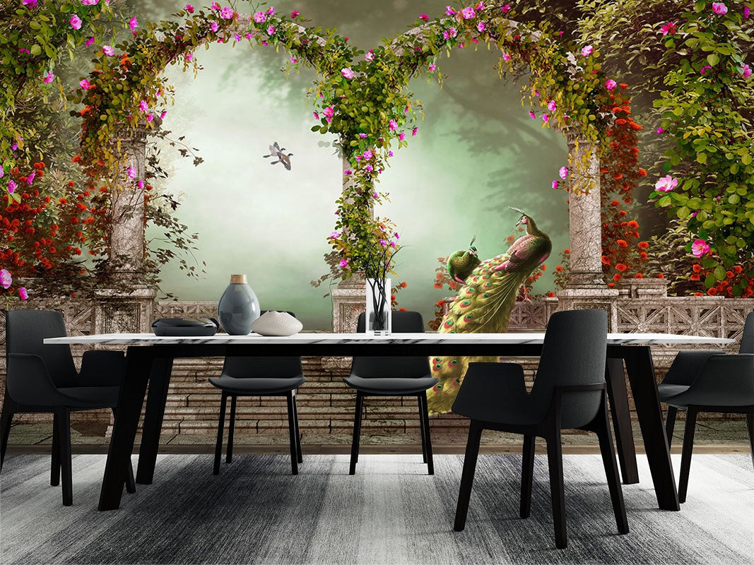 Peacock Art Chinoiserie Green Wallpaper Mural,Self-Adhesive Peel And Stick 3D Wall Paper,Removable Australian Company Wall Decor
