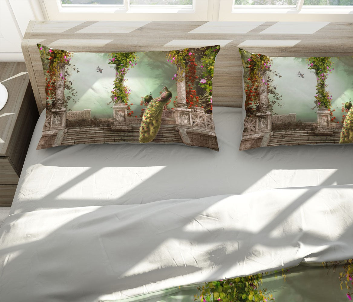 Peacock Castle Animals Green 3D Duvet Cover Set W Pillow Cover, Single Double Queen King Size, Printed Cotton Quilt Doona Cover 3 Pcs