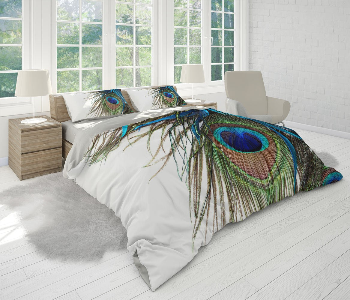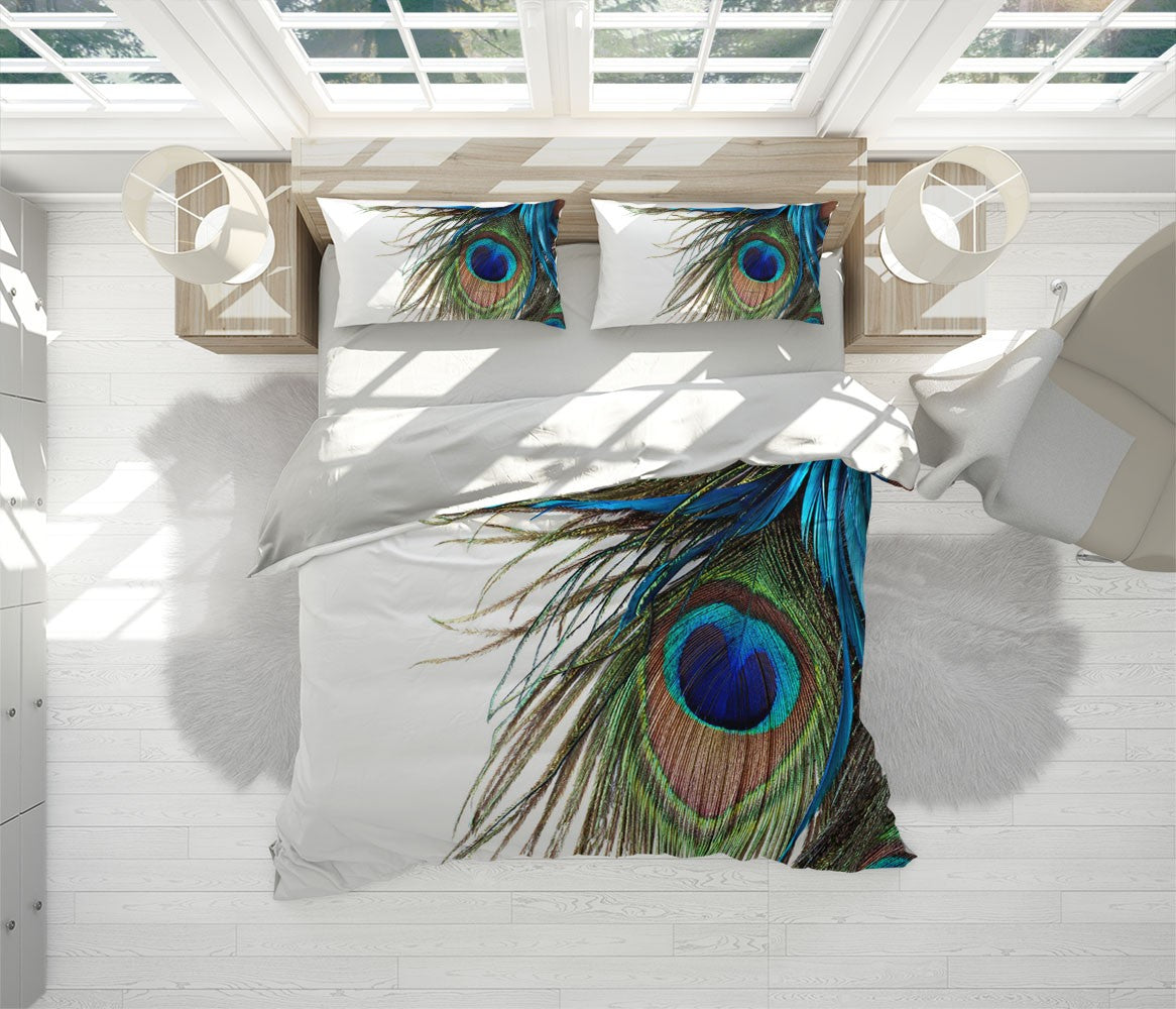 Peacock Feather Texture Feathers Blue 3D Duvet Cover Set W Pillow Cover, Single Double Queen King Size, Printed Cotton Quilt Doona Cover
