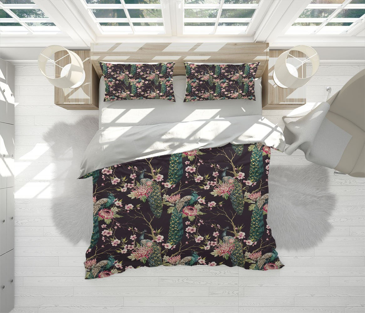 Peacock Floral Patterns Multicolour 3D Duvet Cover Set W Pillow Cover, Single Double Queen King Size, Printed Cotton Quilt Doona Cover 3 Pcs