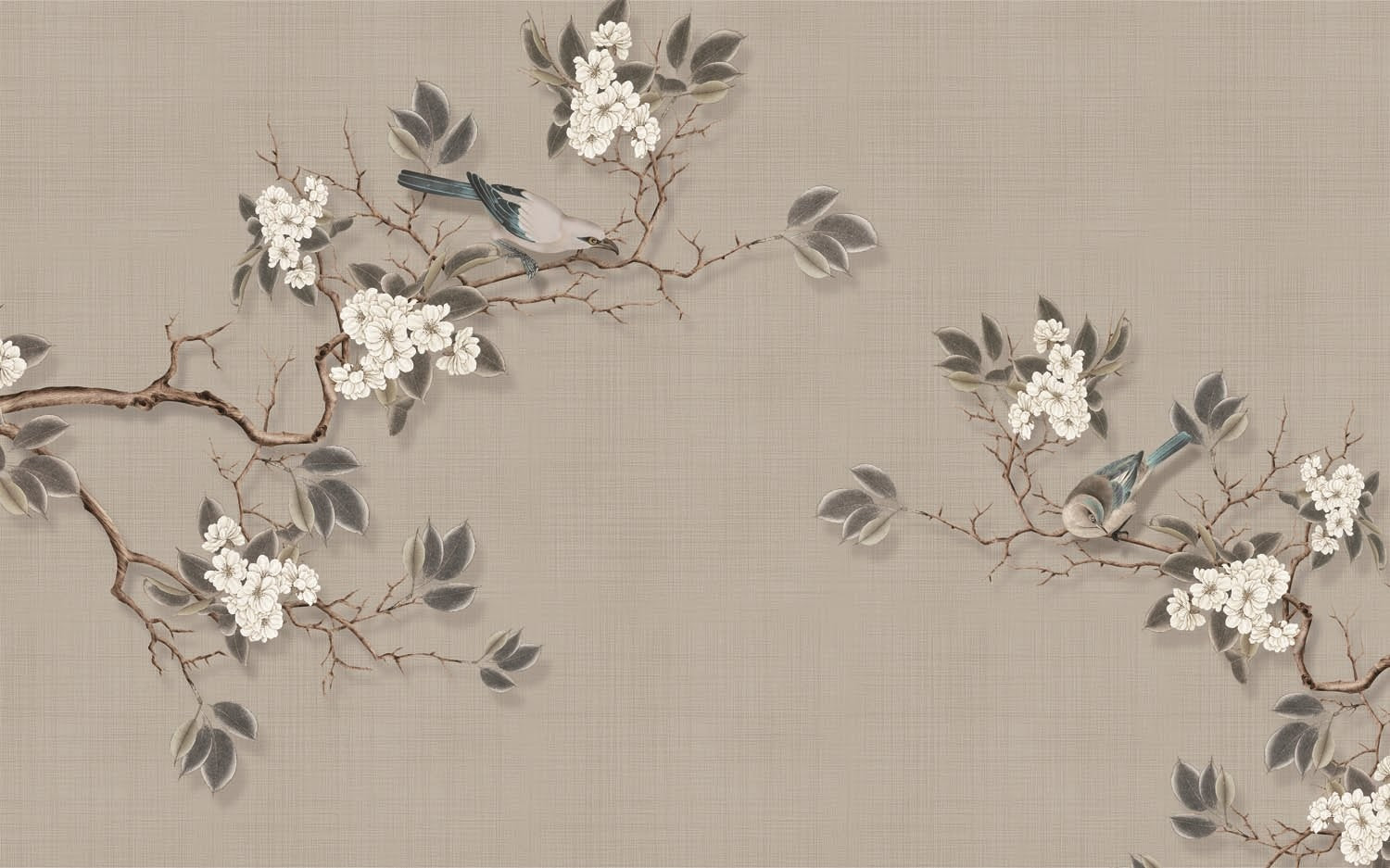 Pear Tree Art Chinoiserie Brown Wallpaper Mural
