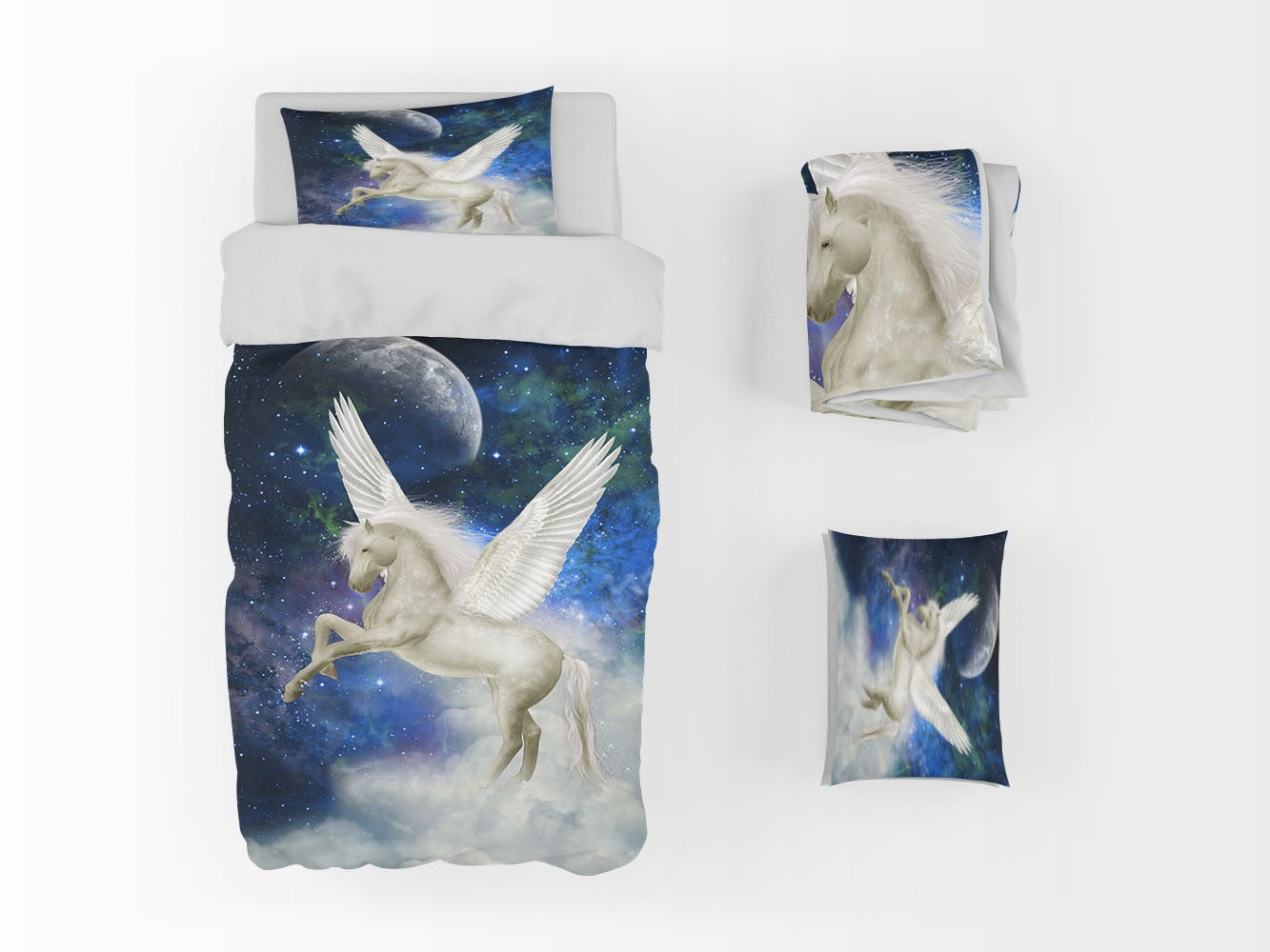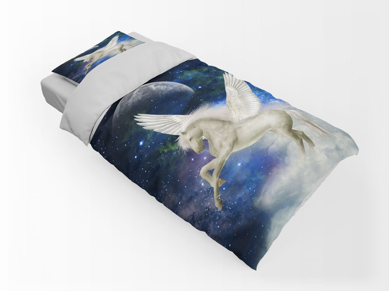 Pegasus Universe Fantasy Animals White 3D Duvet Cover Set W Pillow Cover, Single Double Queen King Size, Printed Cotton Quilt Doona Cover