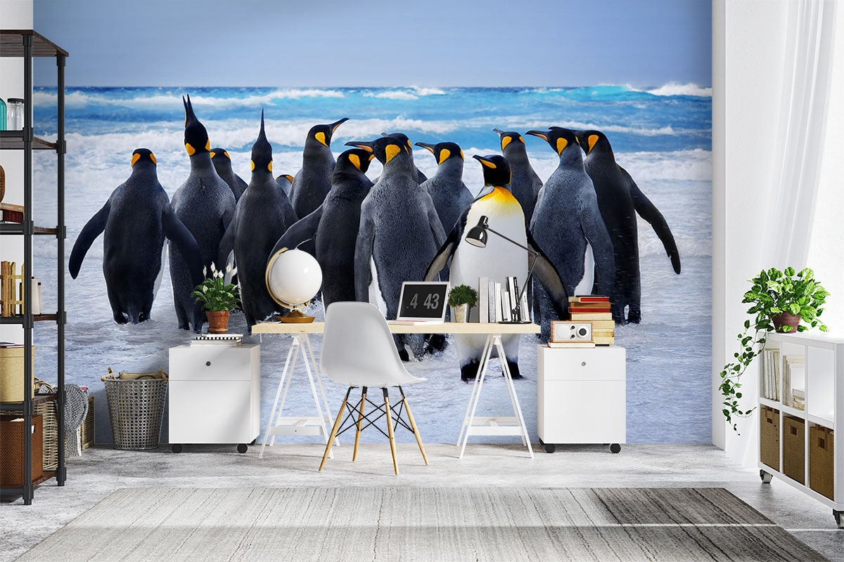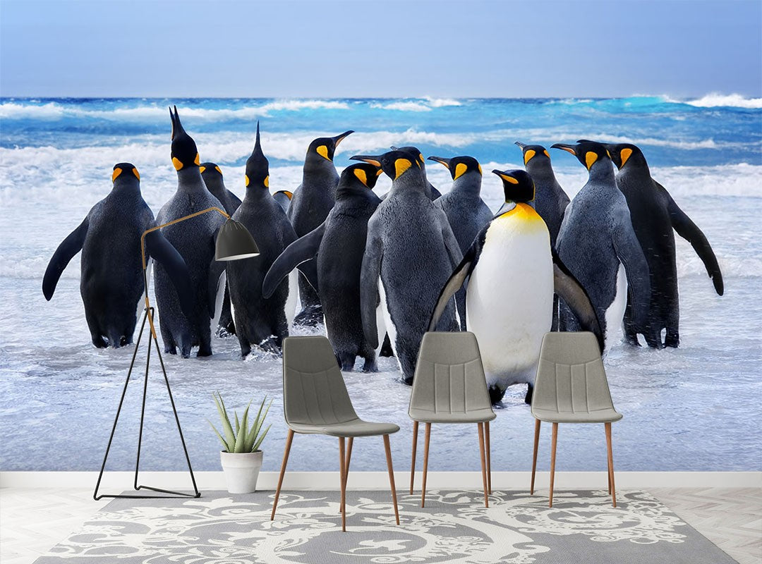 Penguin Animals Wild Animals Black Wallpaper Mural,Self-Adhesive Peel And Stick 3D Wall Decal,Removable Australian Company Wall Decor