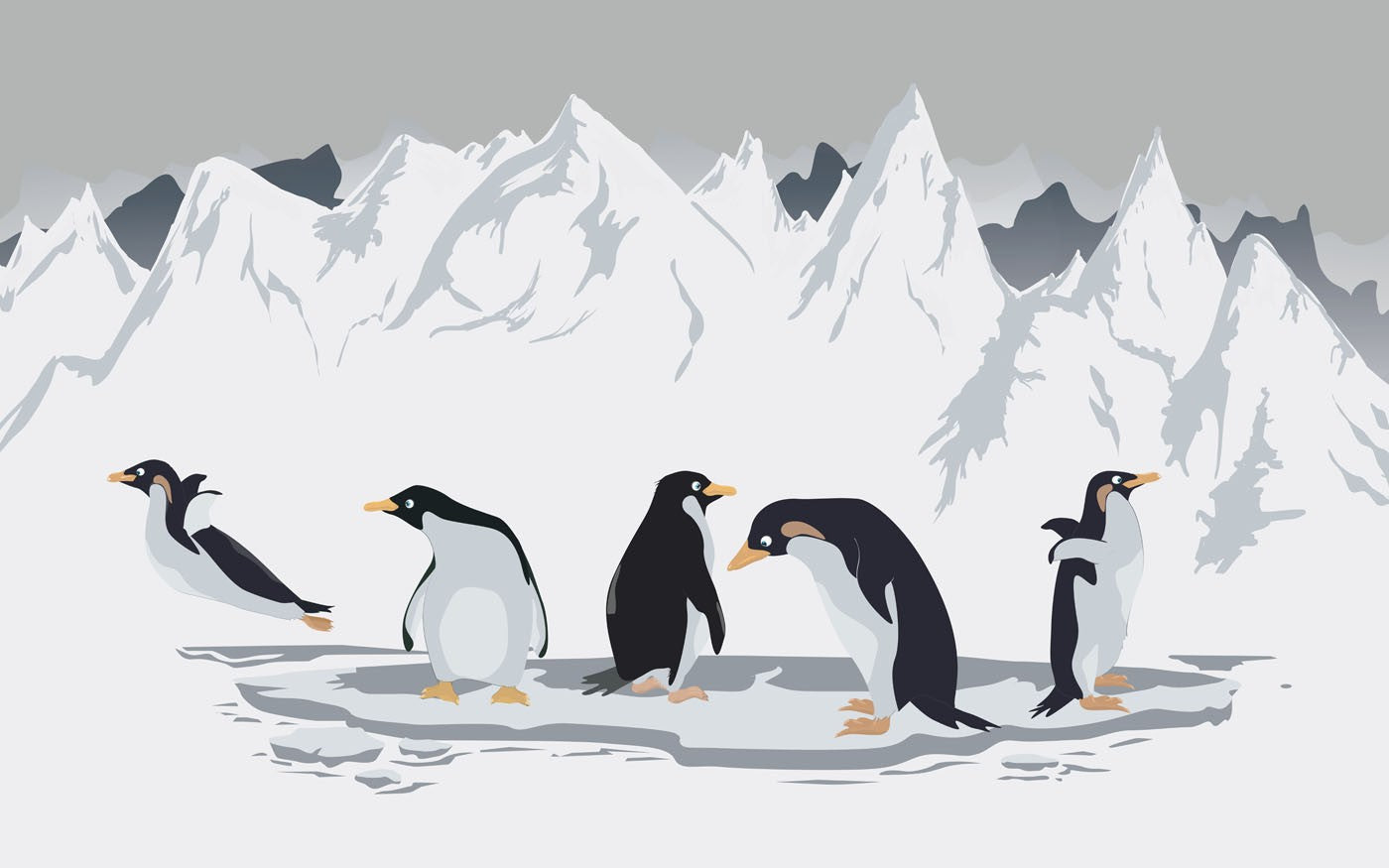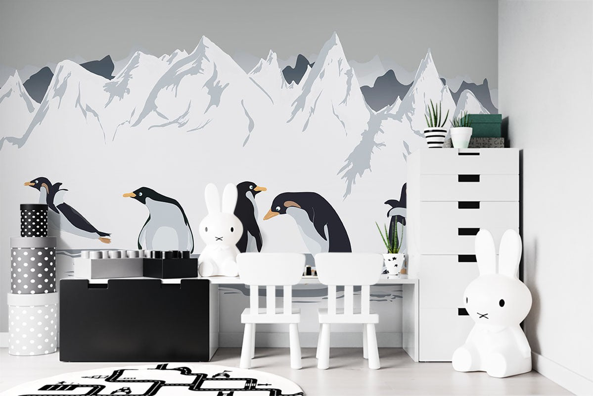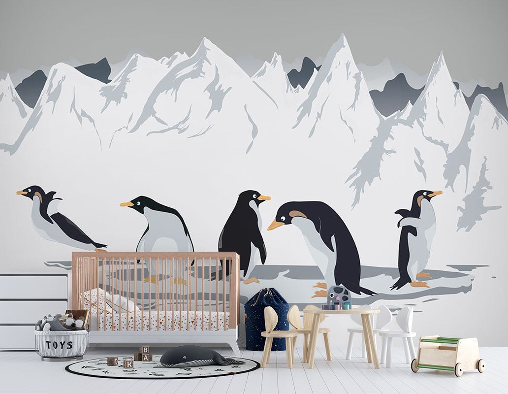 Penguins Mountains Kids Animal Gray Wallpaper Mural,Self-Adhesive Peel And Stick 3D Wall Mural,Removable Bedroom Wall Decor