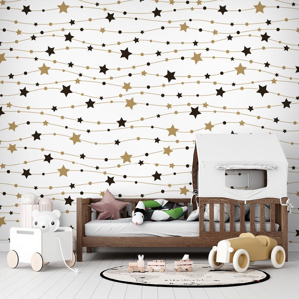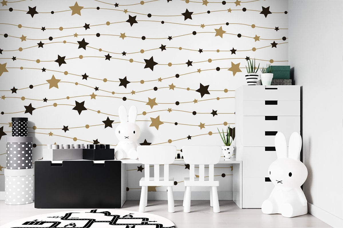 Pentagram Print Kids Patterns White Wallpaper Mural,Self-Adhesive Peel And Stick 3D Wall Paper,Designer Removable Wall Decor