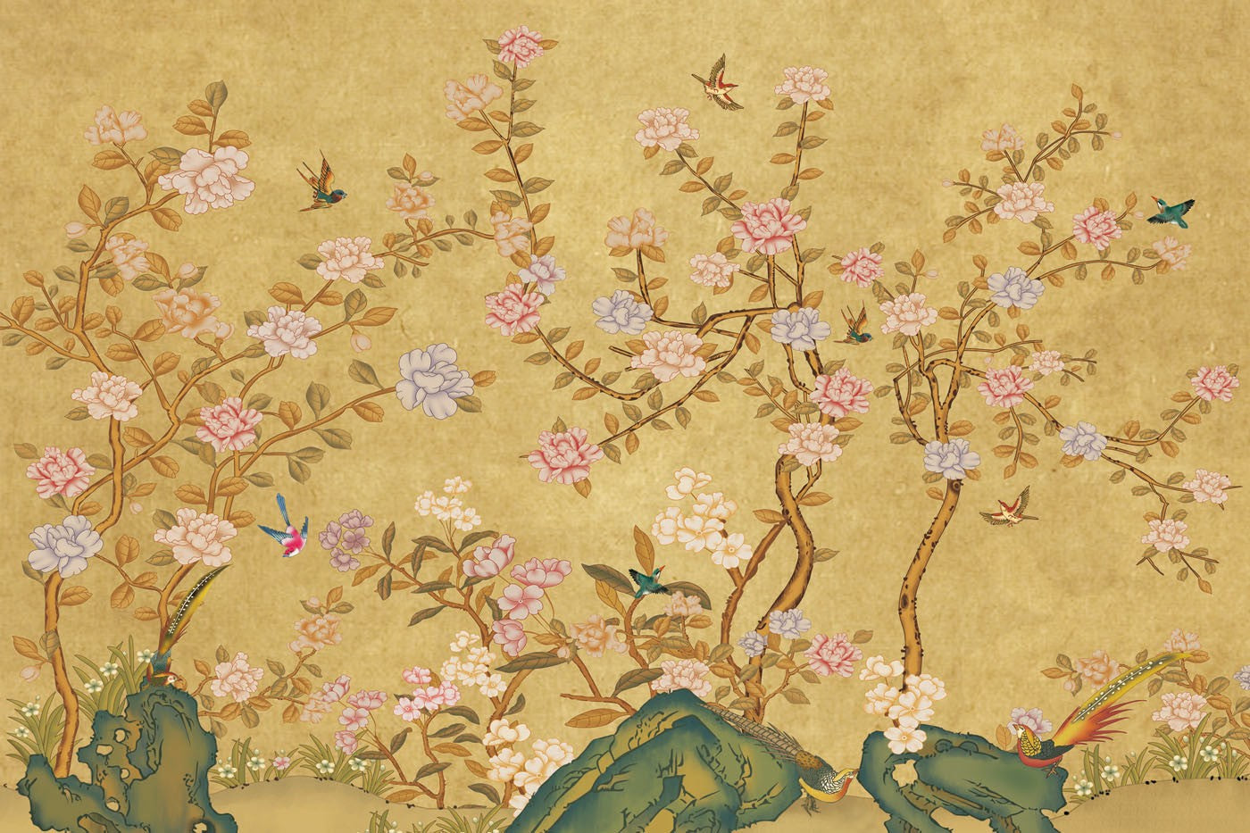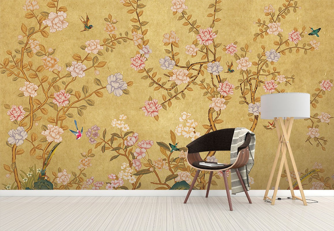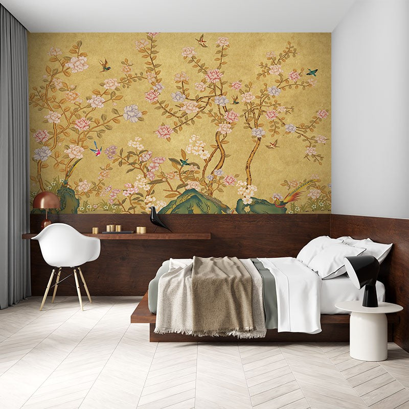 Peony Art Chinoiserie Creamy Wallpaper Mural,Self-Adhesive Peel And Stick 3D Wall Decal,Designer Bedroom Wall Decor