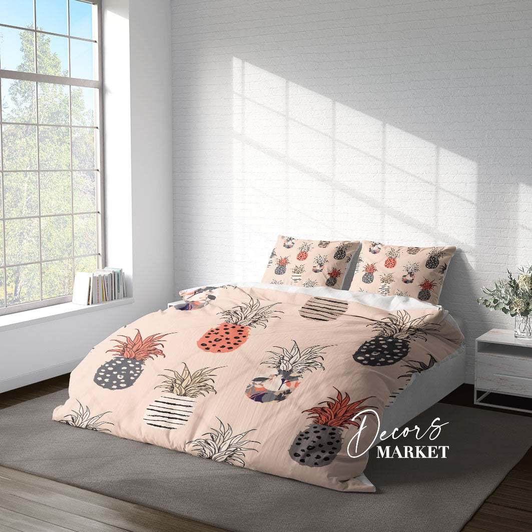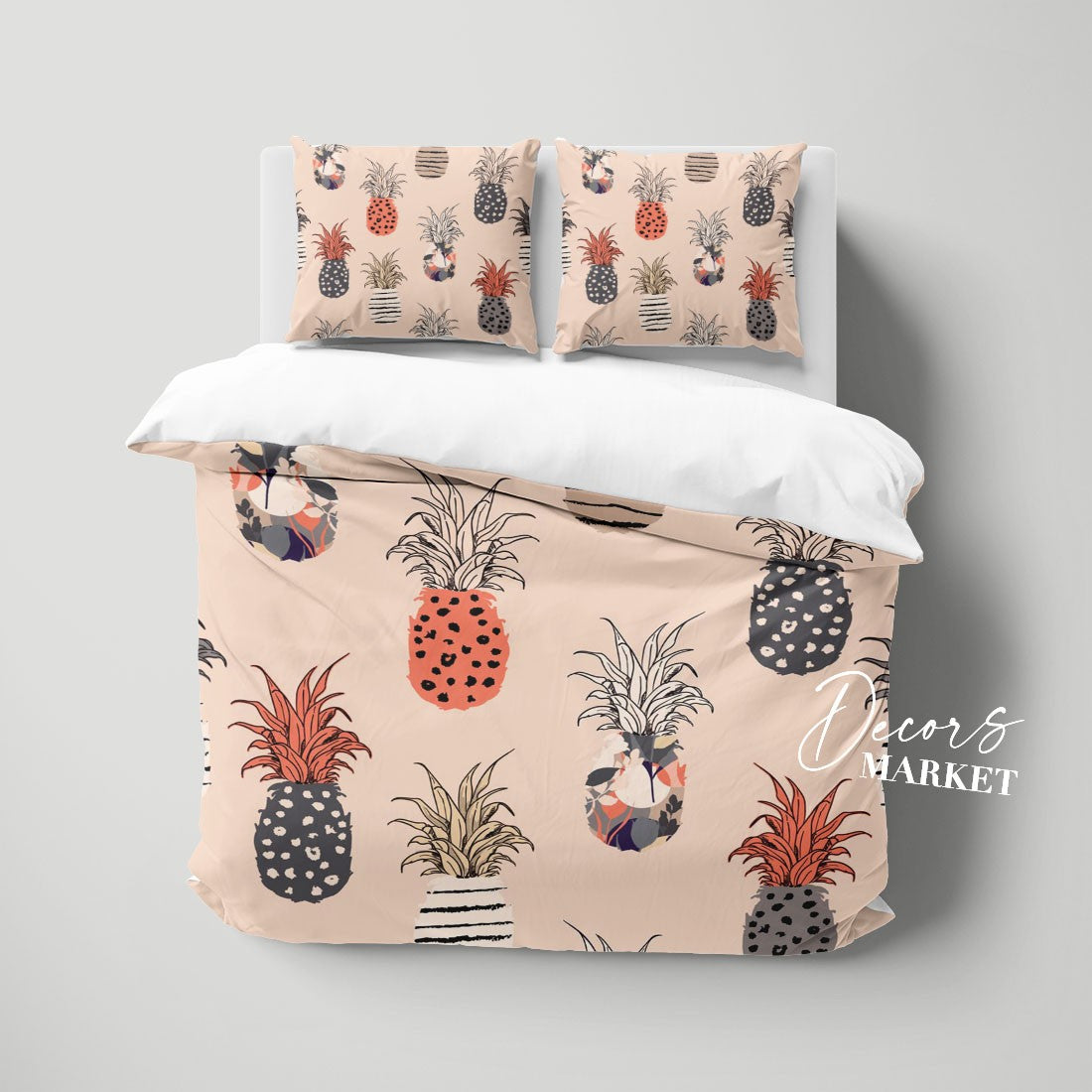 Pineapples Tropical Duvet Cover Set w Pillowcases, Creamy Floral Patterns 3D Quilt Cover, 3pc Single Double Queen King Size Doona Cover