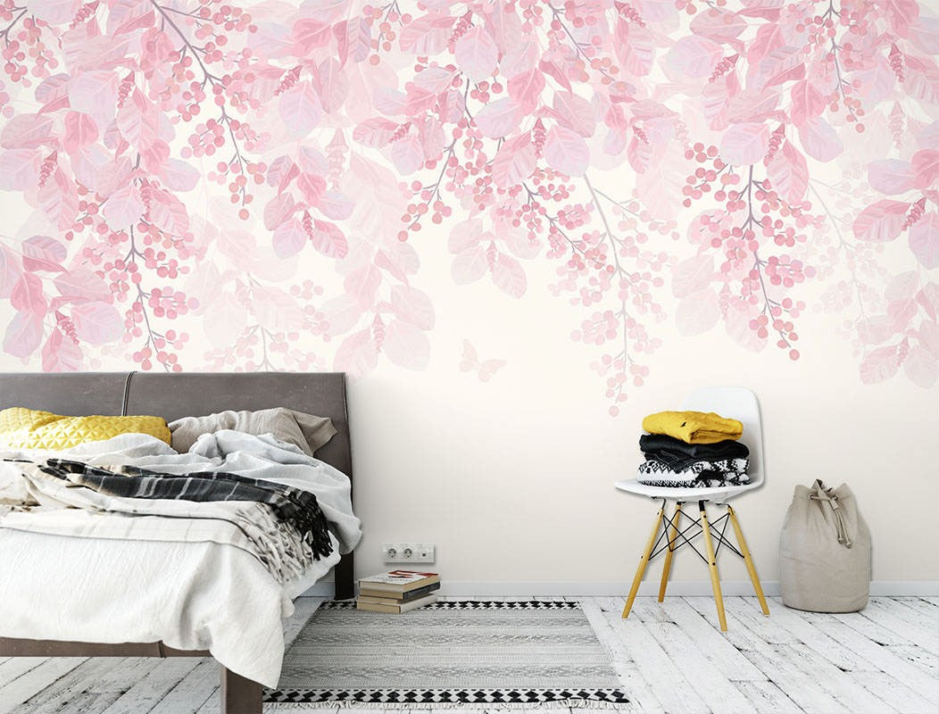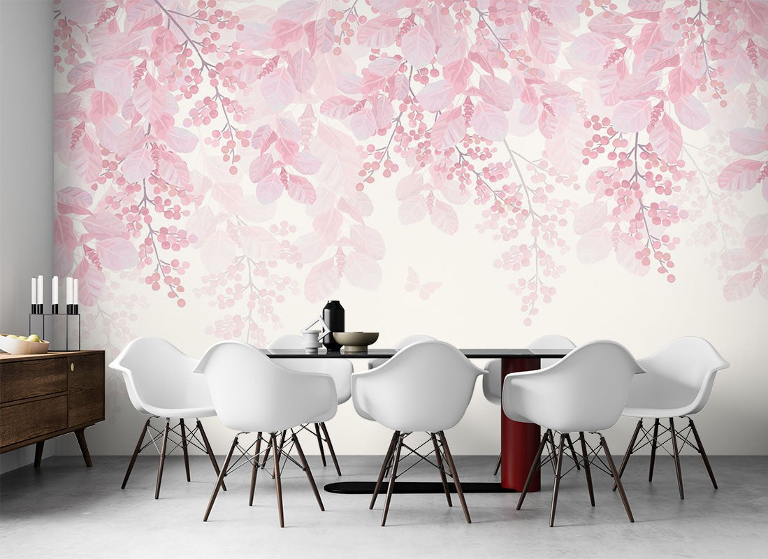 Pink Cherries Floral Dutch Flowers Pink Wallpaper Mural,Self-Adhesive Peel And Stick 3D Wall Mural,Australian Company Bedroom Wall Decor