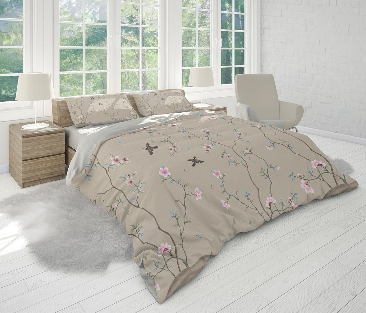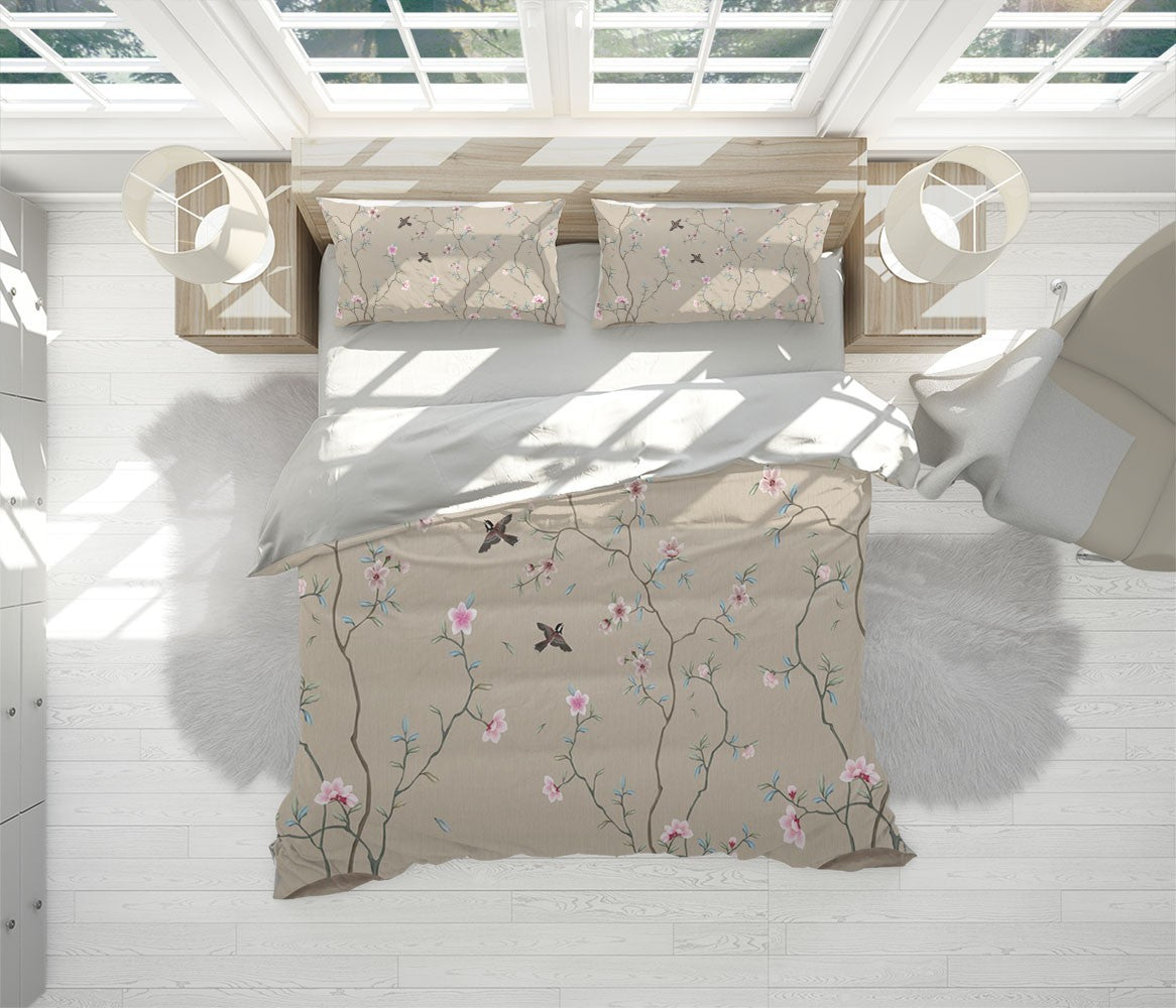 Pink Floral Duvet Cover Set W Pillow Cover, Creamy Art Chinoiserie 3D Quilt Cover, Single Double Queen King Size Doona Cover