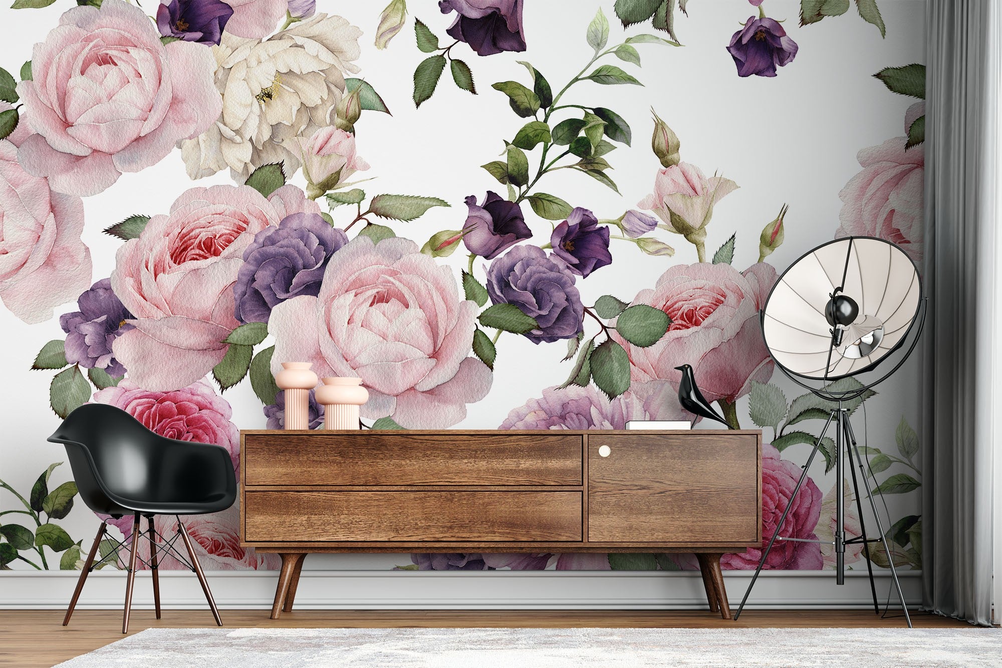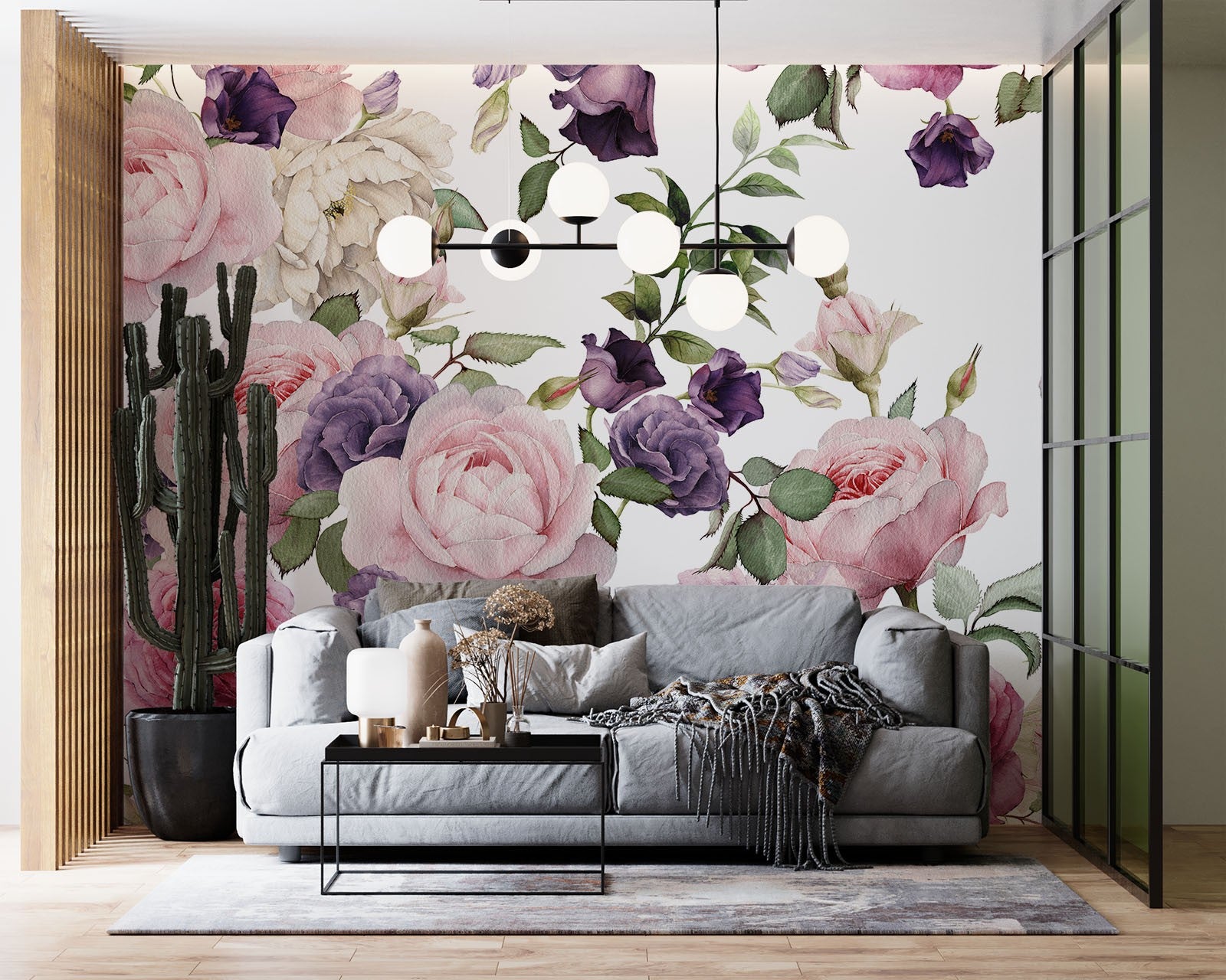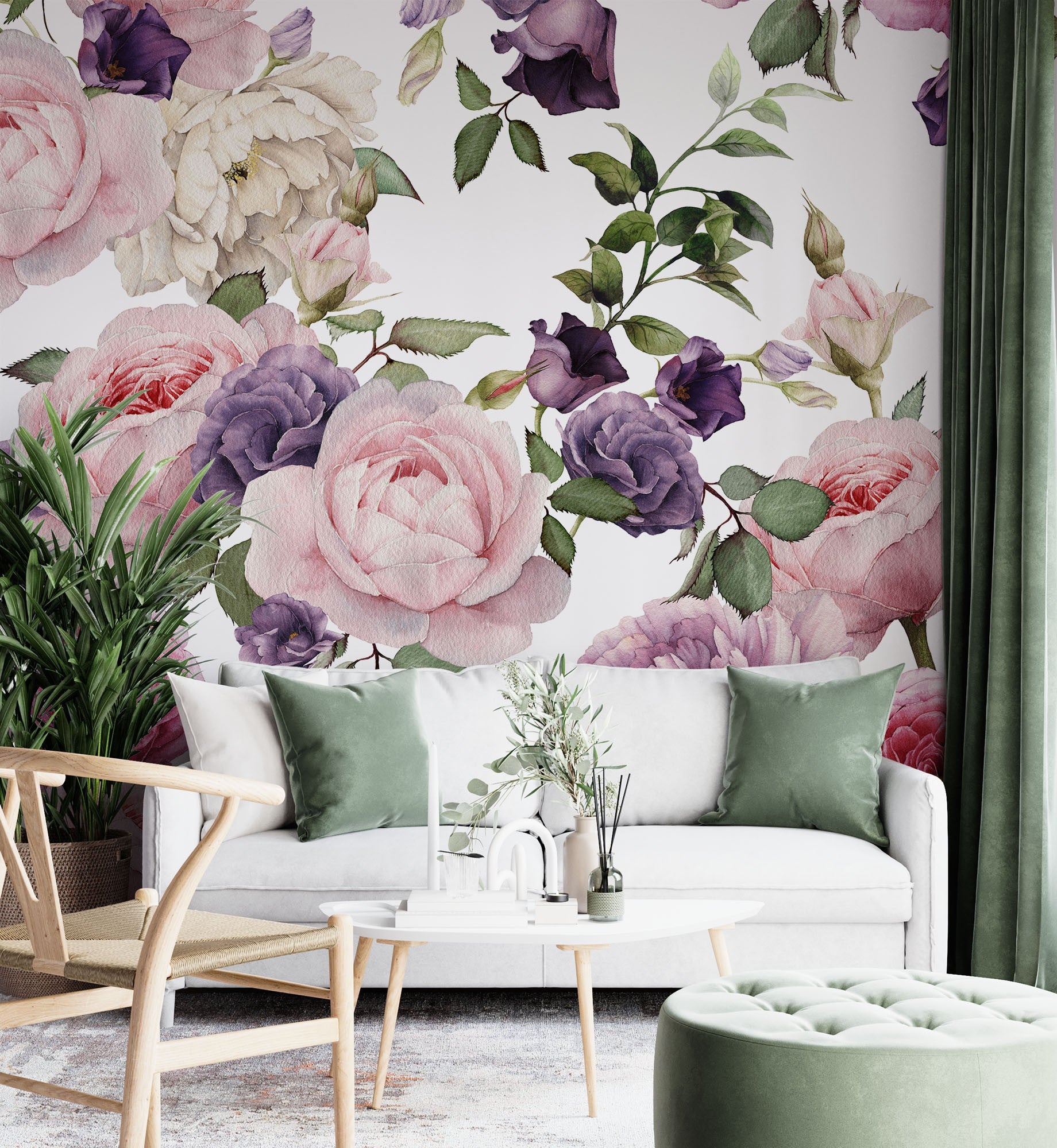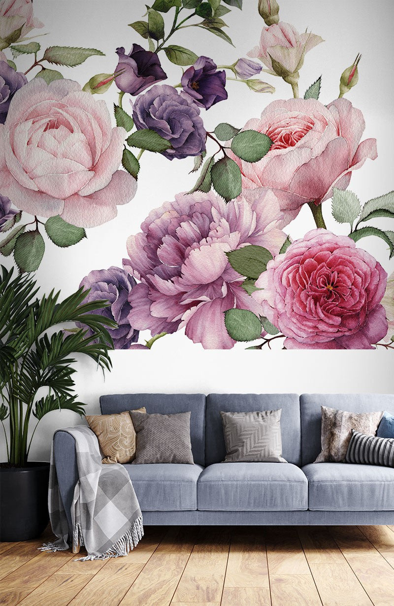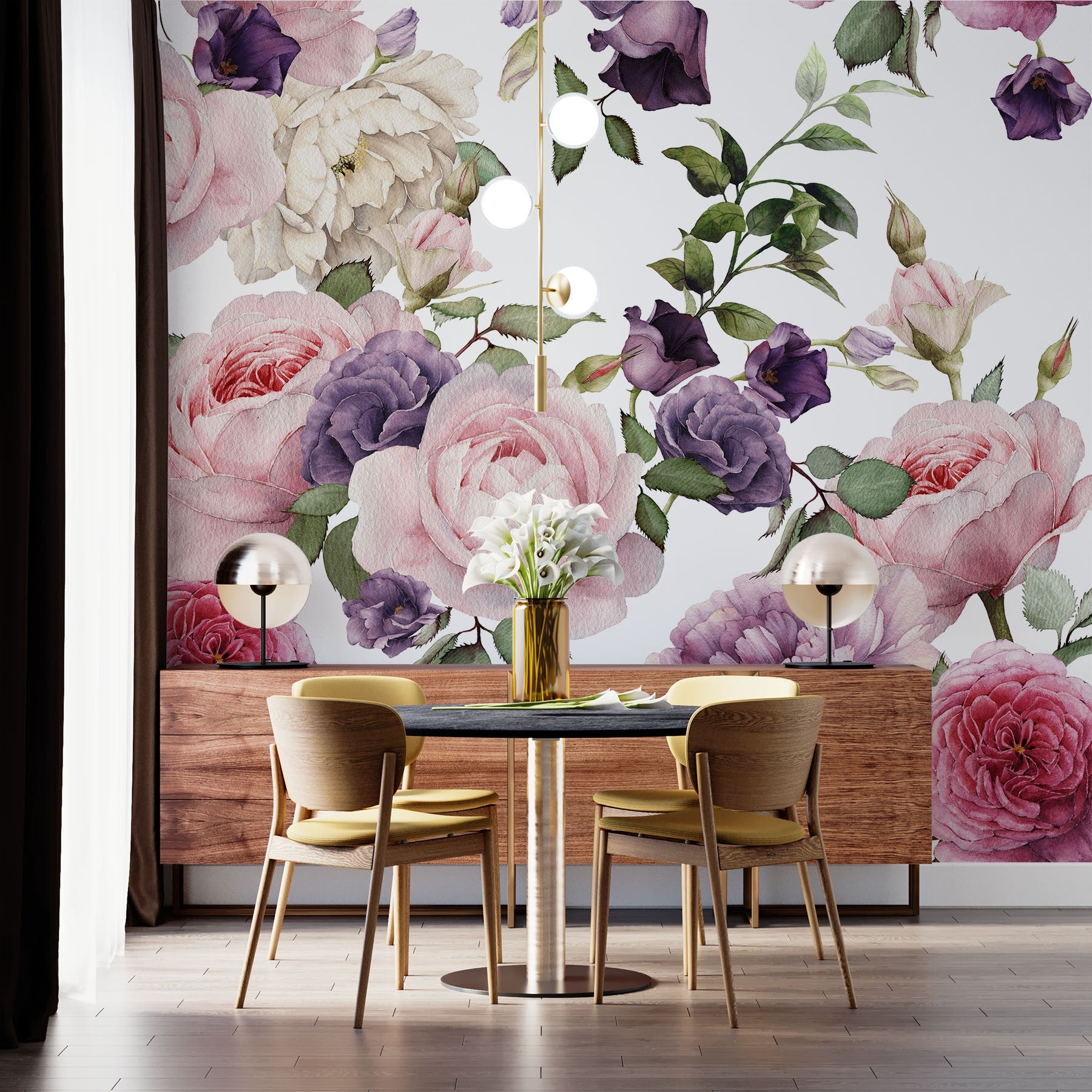 Pink Purple Floral Flowers Colorful Wallpaper Mural