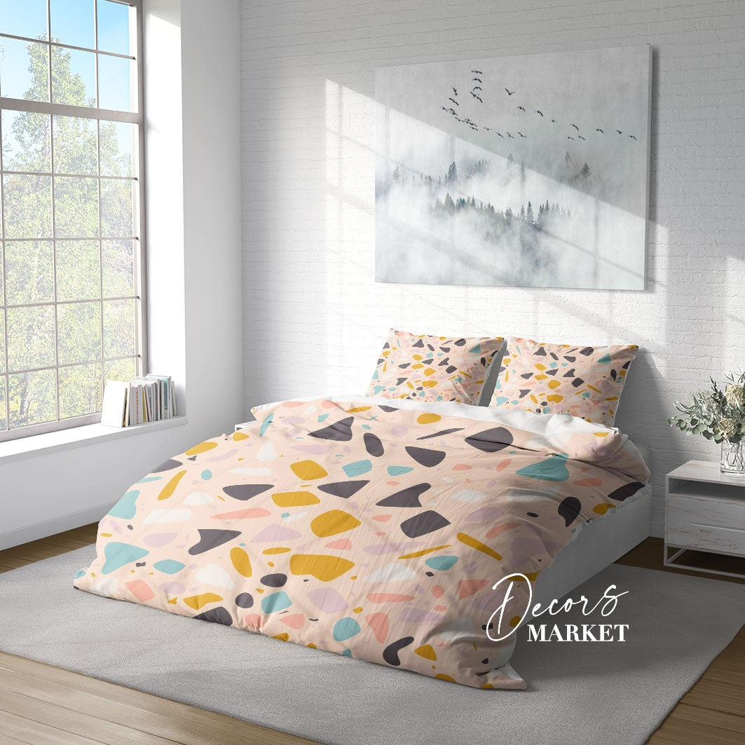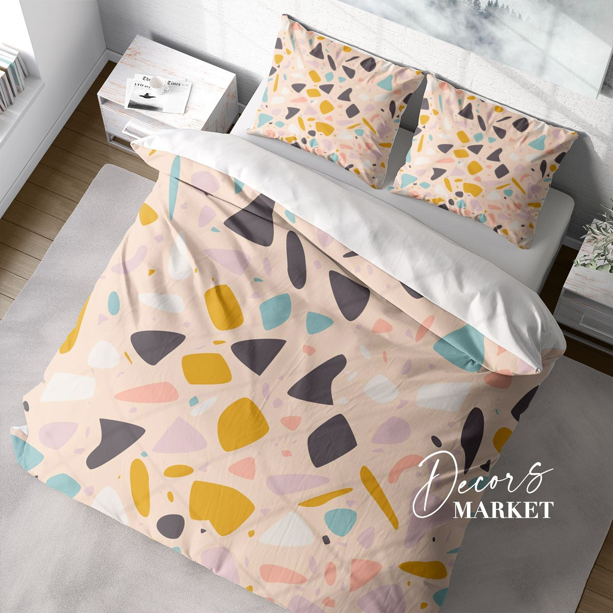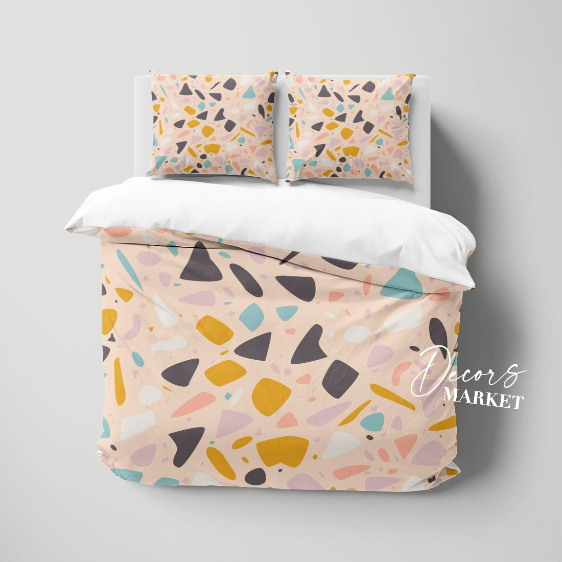 Pink Terrazzo Large Chips Duvet Cover Set w Pillowcases, Pink Texture Marble 3D Quilt Cover, 3pc Single Double Queen King Size Doona Cover