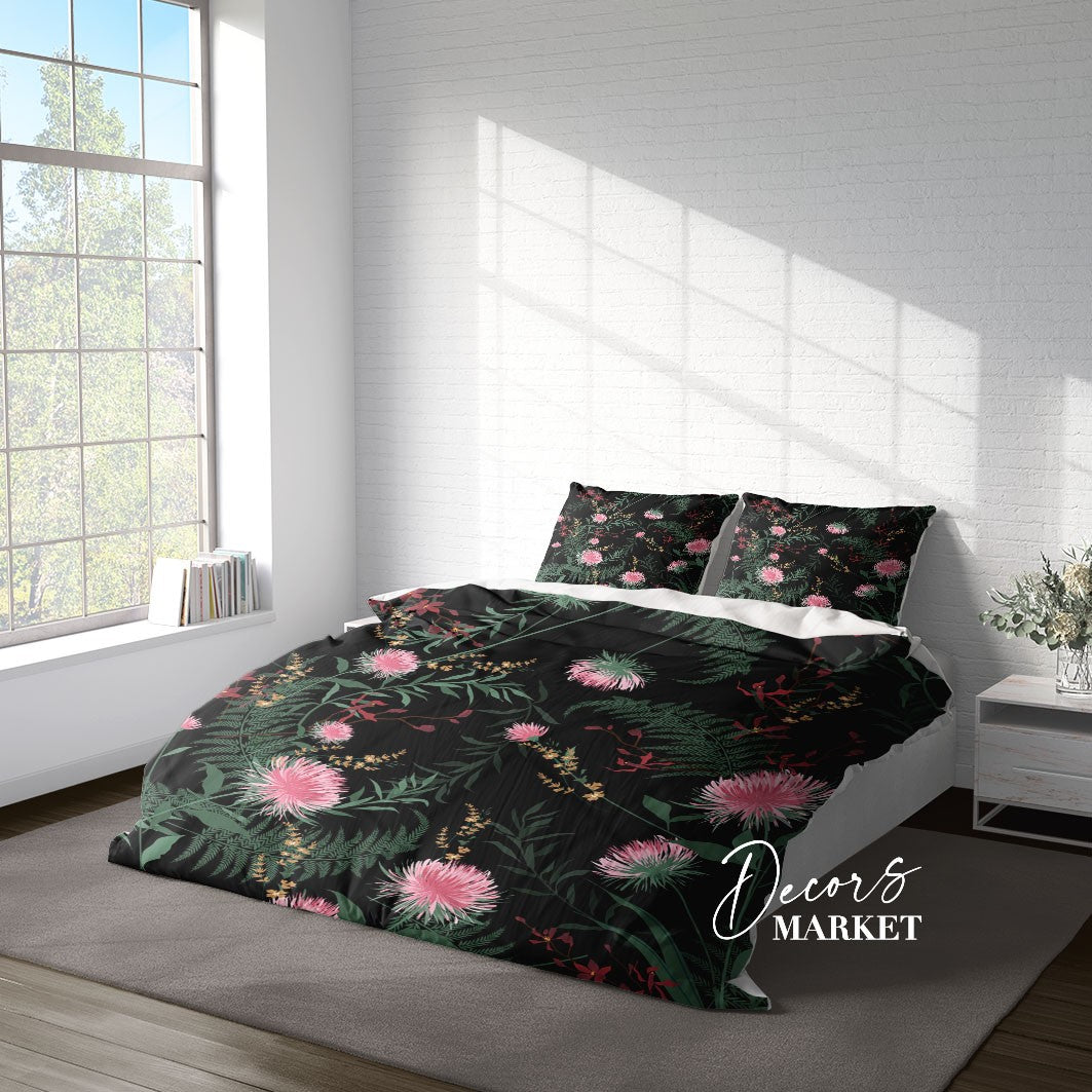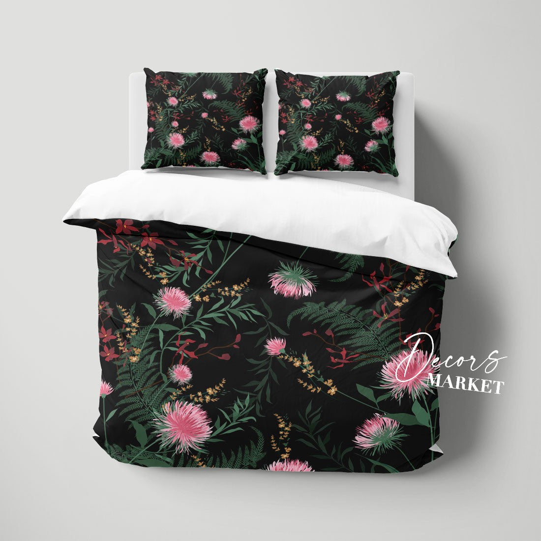 Pink Thistle Branches Duvet Cover Set w Pillowcases, Pink Floral Flowers 3D Quilt Cover, 3pc Single Double Queen King Size Doona Cover