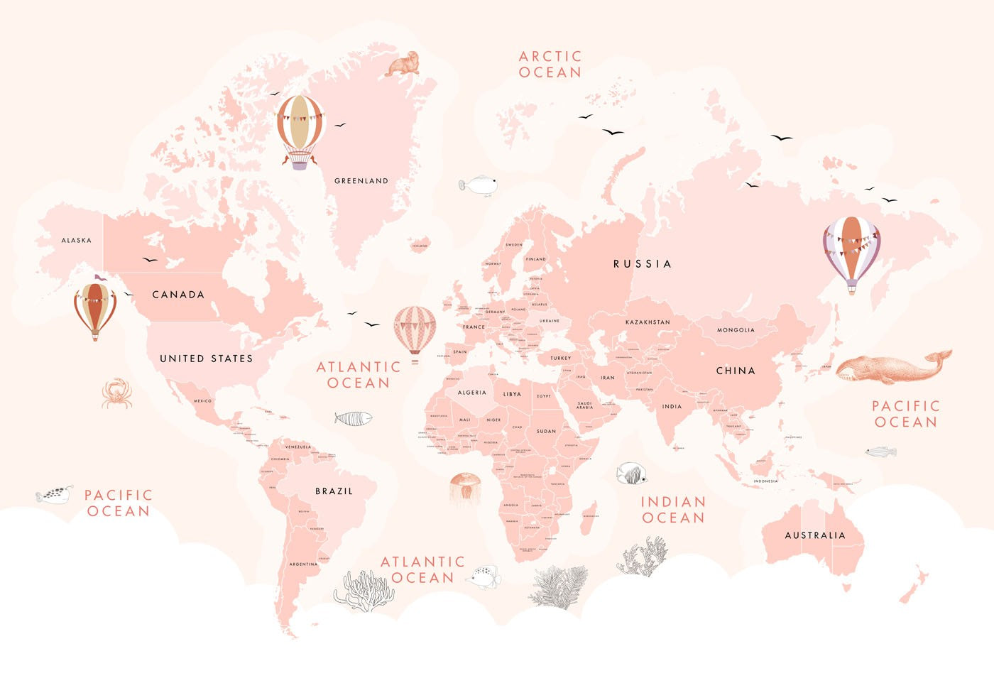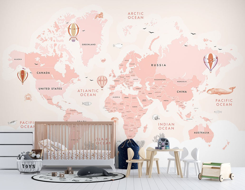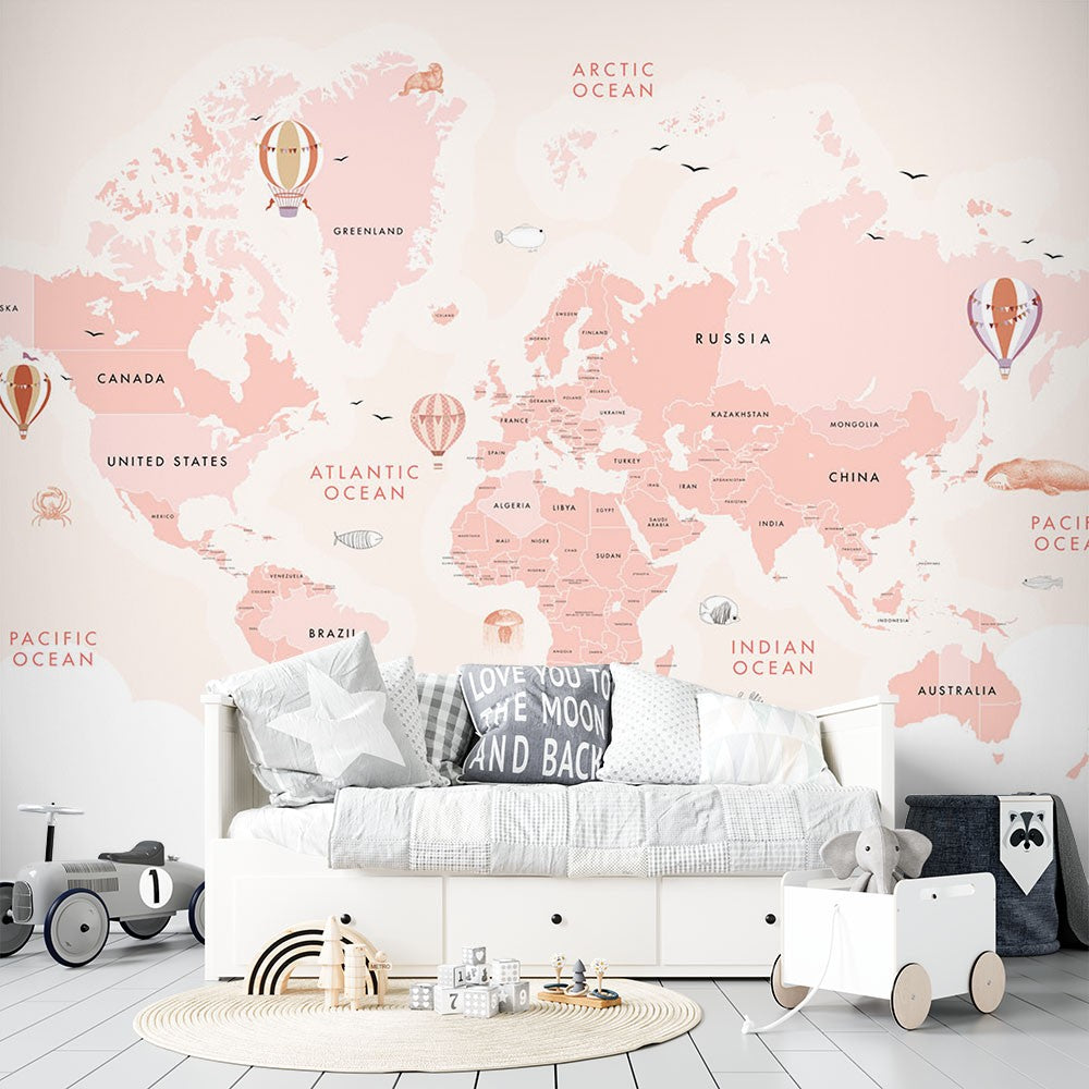 Pink World Map Kids Kids Map Pink Wallpaper Mural,Self-Adhesive Peel And Stick 3D Wall Decal,Bedroom Australian Company Wall Decor