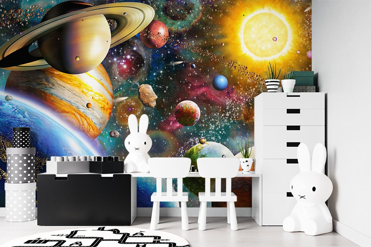 Planet Meteorite Kids Space Bright Wallpaper Mural,Self-Adhesive Peel And Stick 3D Wall Decal,Bedroom Designer Wall Decor