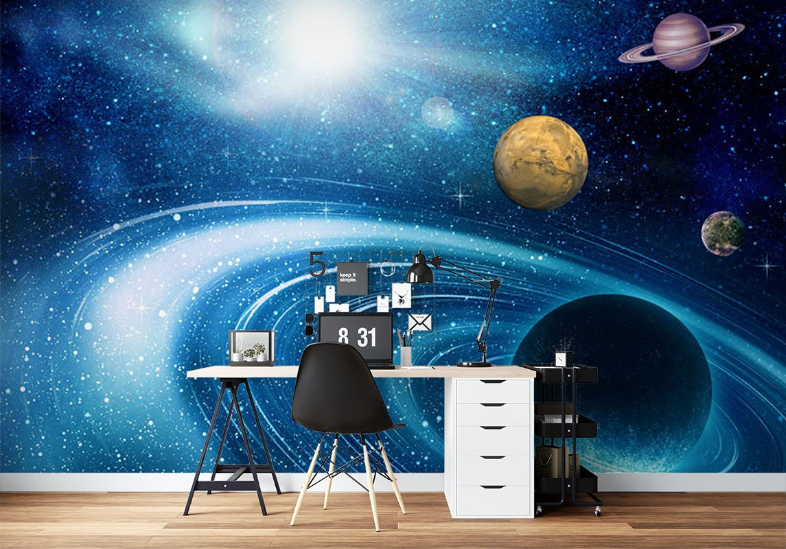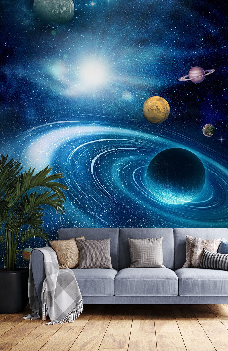 Planet Space Nature Blue Wallpaper Mural,Self-Adhesive Peel And Stick 3D Wall Paper,Bedroom Designer Wall Decor