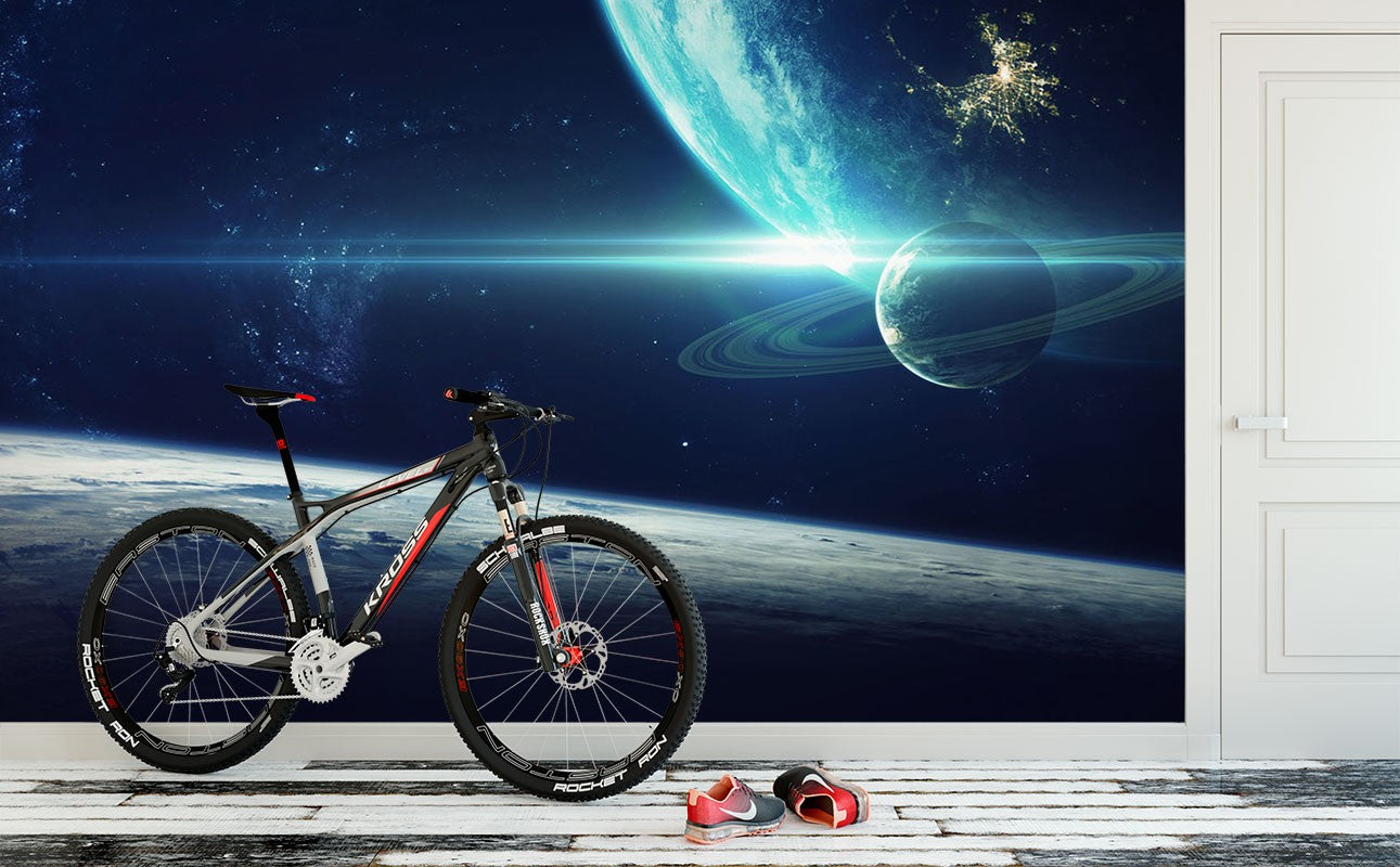 Planets Galaxies Nature Space Blue Wallpaper Mural,Self-Adhesive Peel And Stick 3D Wall Paper,Bedroom Australian Company Wall Decor
