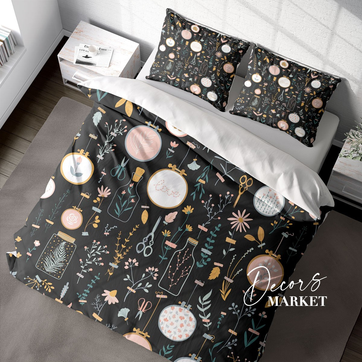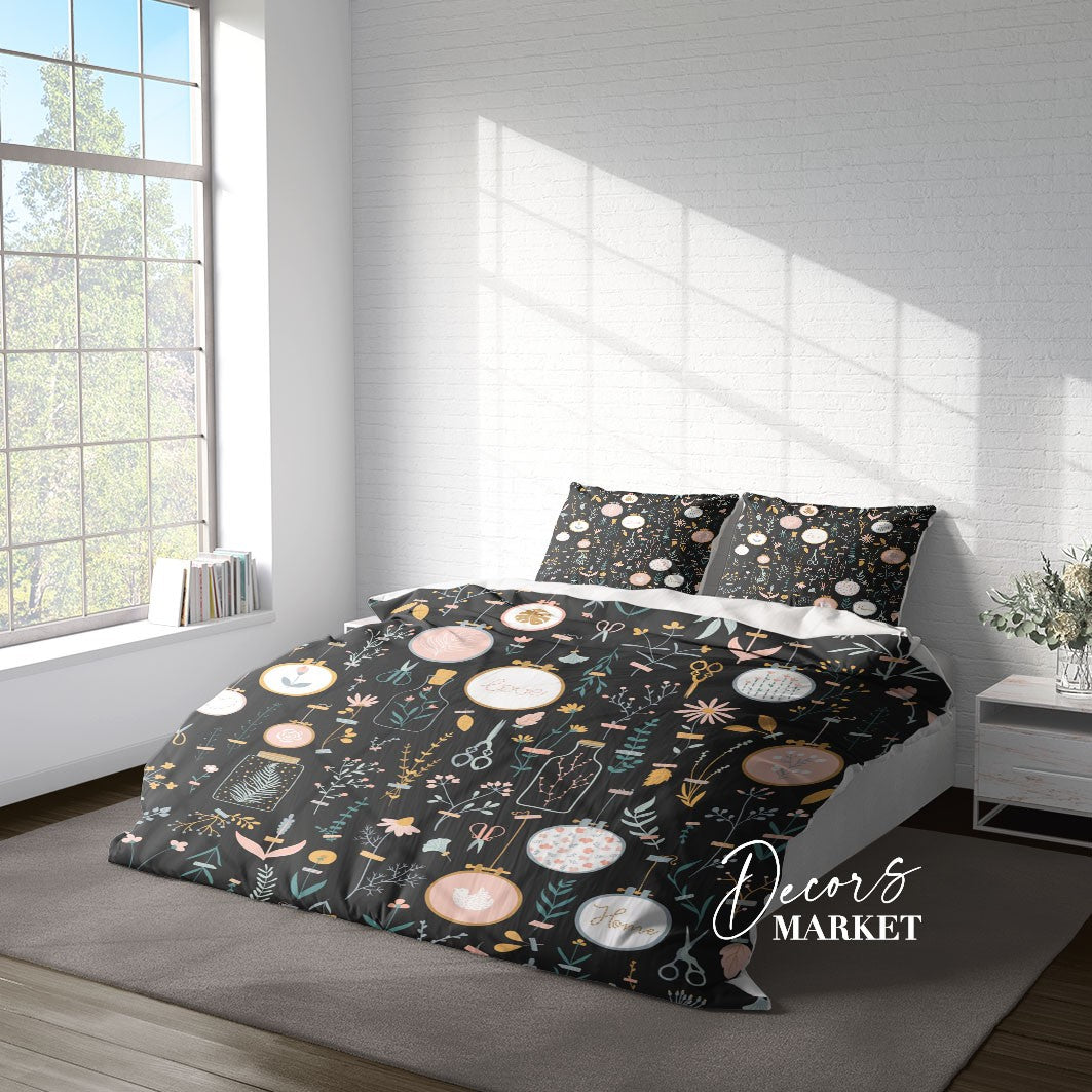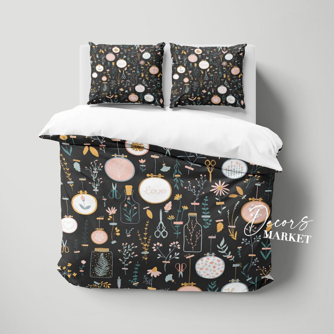 Plant Branch Collection Duvet Cover Set w Pillowcases, Dark Floral Flowers 3D Quilt Cover, 3pc Single Double Queen King Size Doona Cover