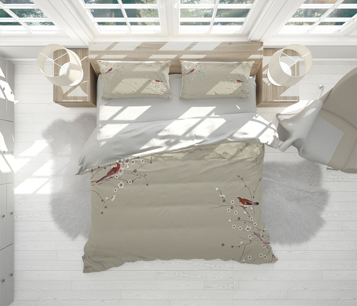 Plum Blossom Duvet Cover Set W Pillow Cover, Creamy Art Chinoiserie 3D Quilt Cover, Single Double Queen King Size Doona Cover