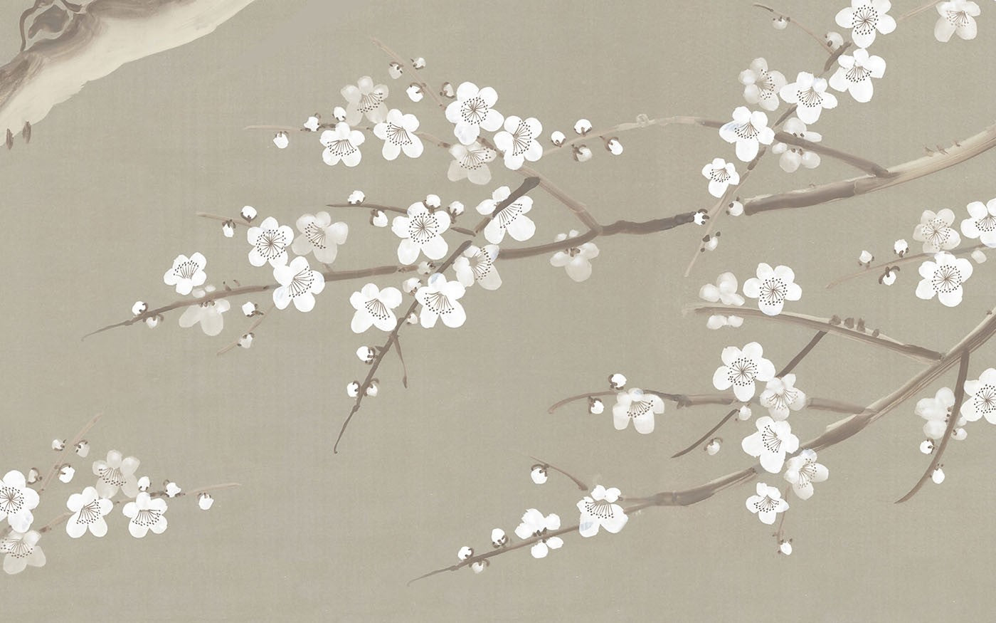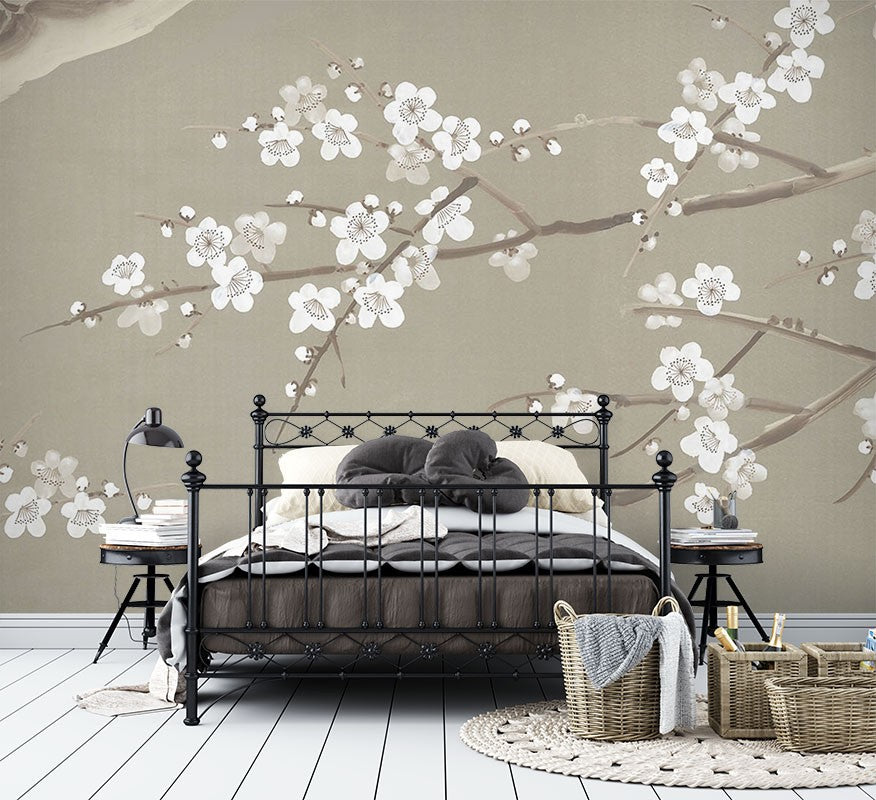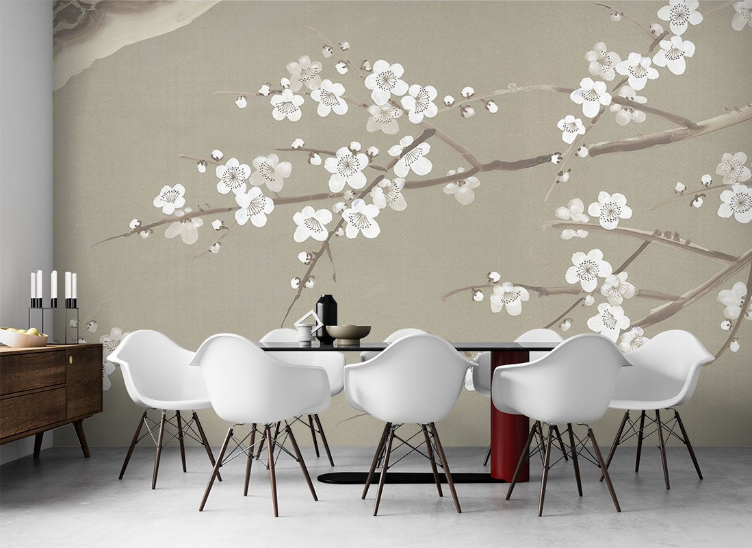 Plum Blossom Floral Dutch Flowers Creamy Wallpaper Mural,Self-Adhesive Peel And Stick 3D Wall Paper,Removable Designer Wall Decor