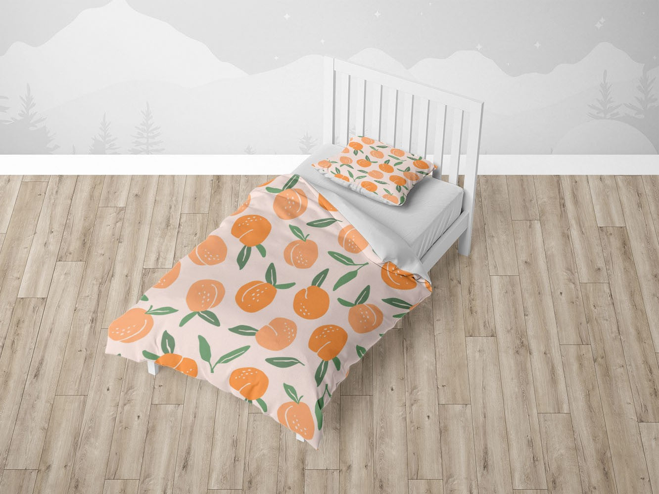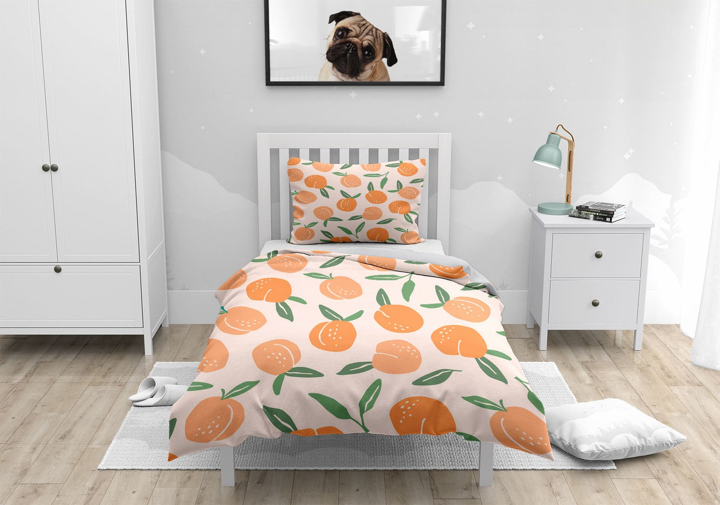 Plum Peach Leaf Duvet Cover Set w Pillowcases, Orange Floral Patterns 3D Quilt Cover, 3pc Single Double Queen King Size Doona Cover