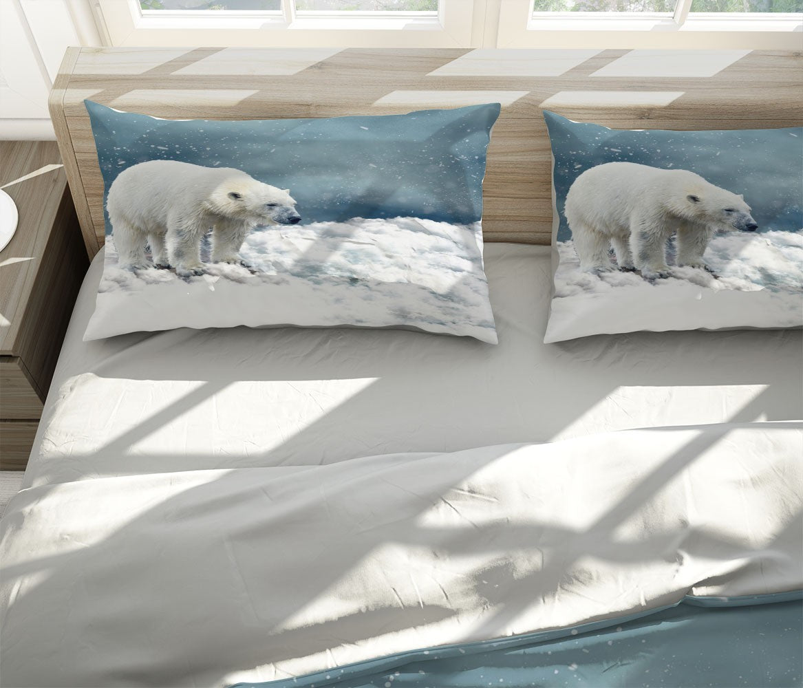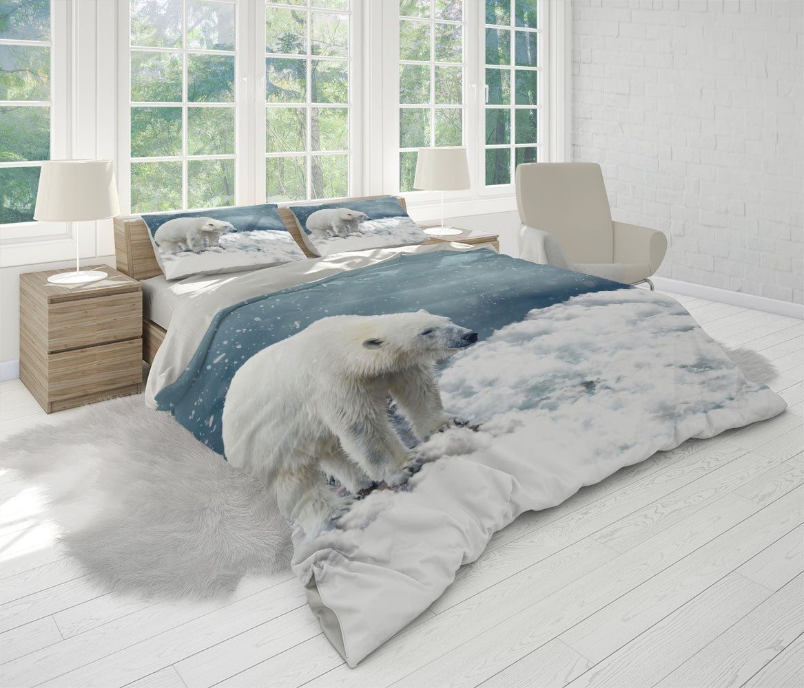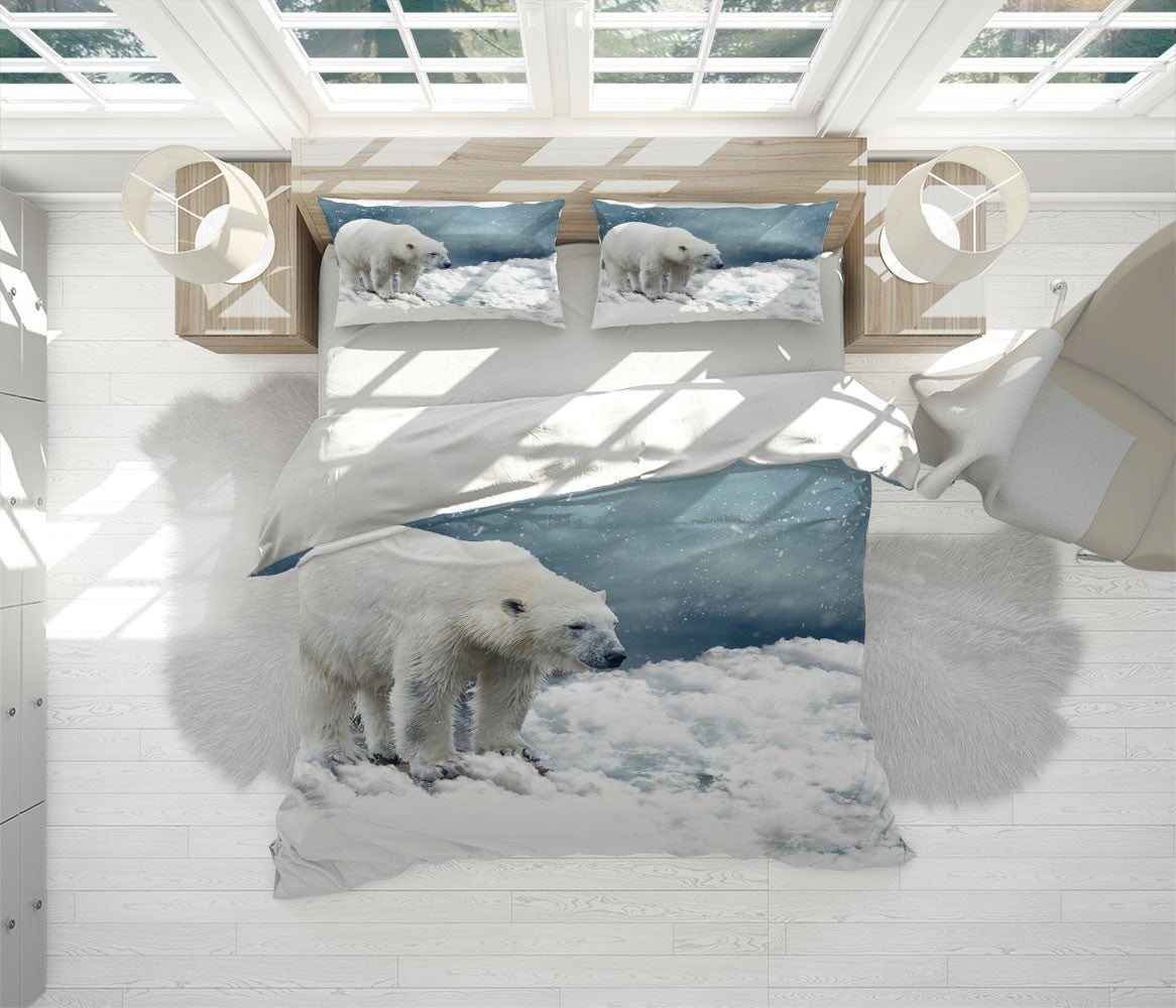 Polar Bear Duvet Cover Set W Pillow Cover, Gray Animals Wild Animals 3D Quilt Cover, Single Double Queen King Size Doona Cover