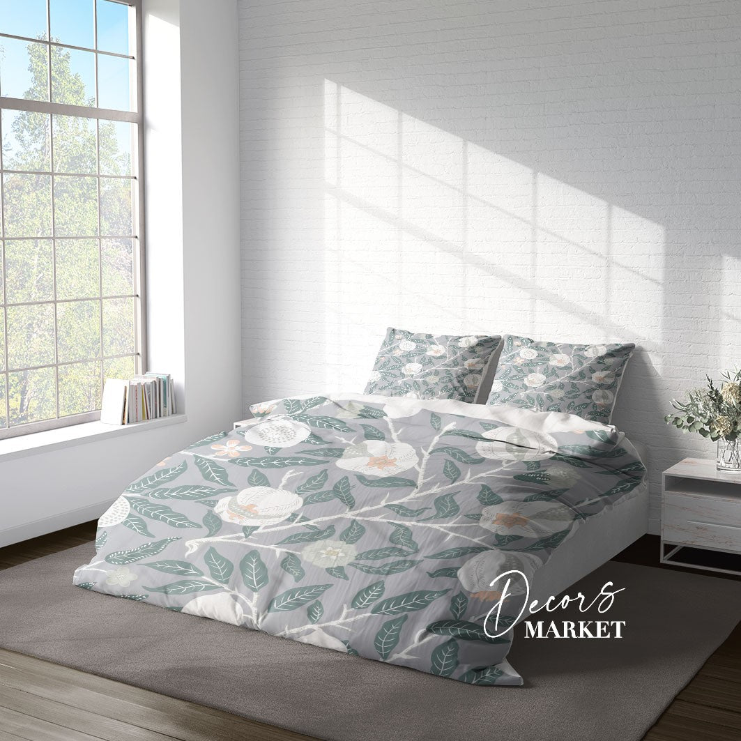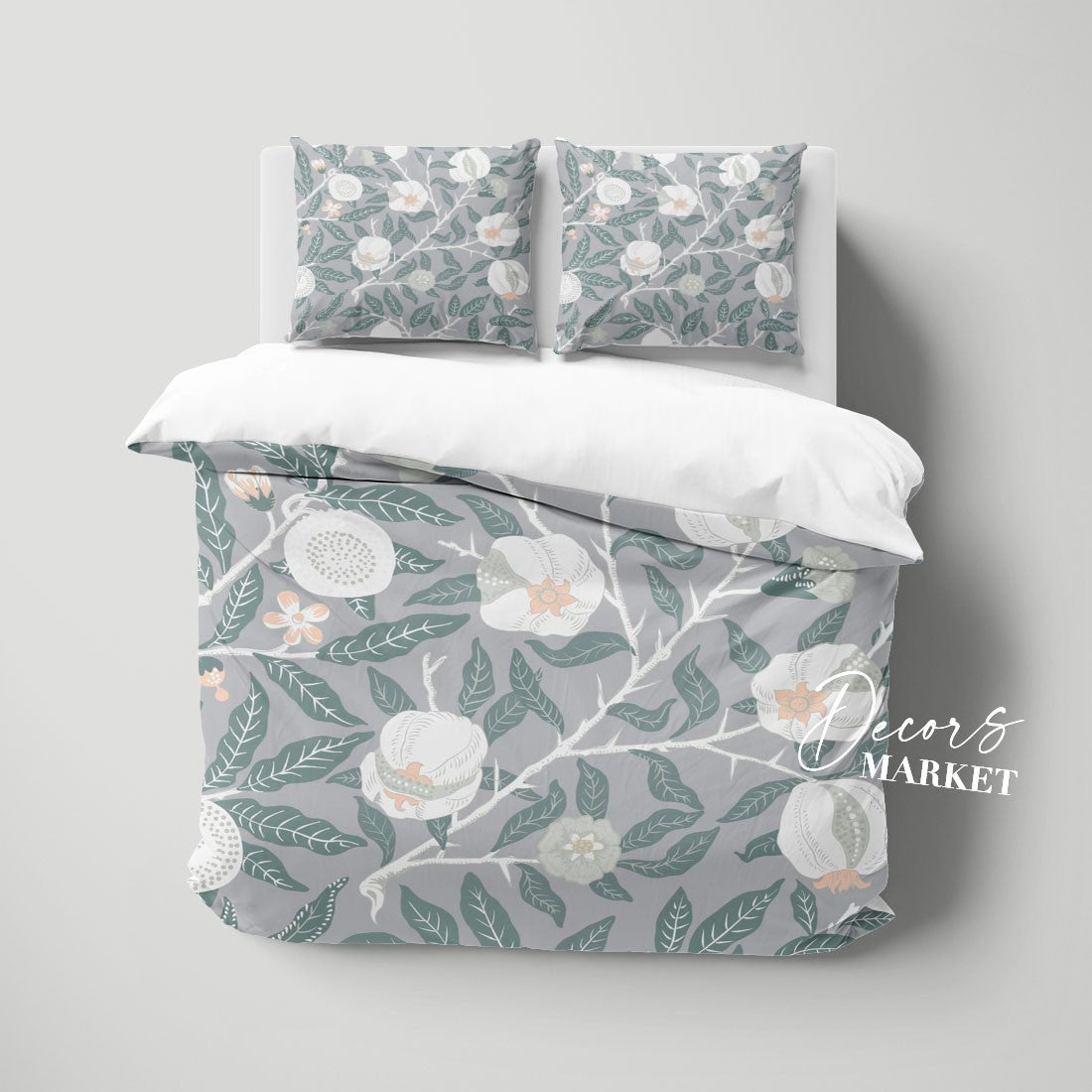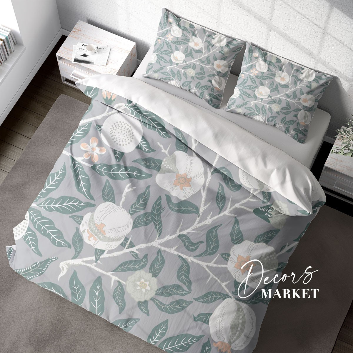 Pomegranate Flower Duvet Cover Set w Pillowcases, Green Floral Patterns 3D Quilt Cover, 3pc Single Double Queen King Size Doona Cover