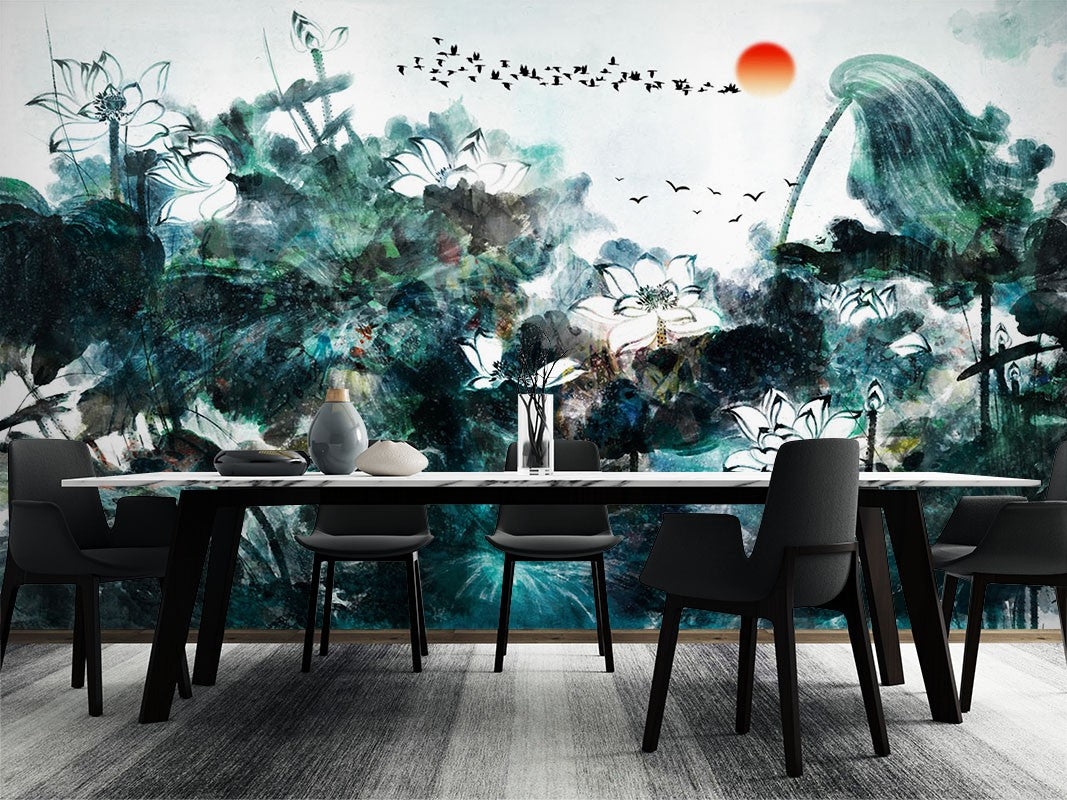 Pool Art Traditional Green Wallpaper Mural,Self-Adhesive Peel And Stick 3D Wall Decor,Australian Company Removable Wall Decor