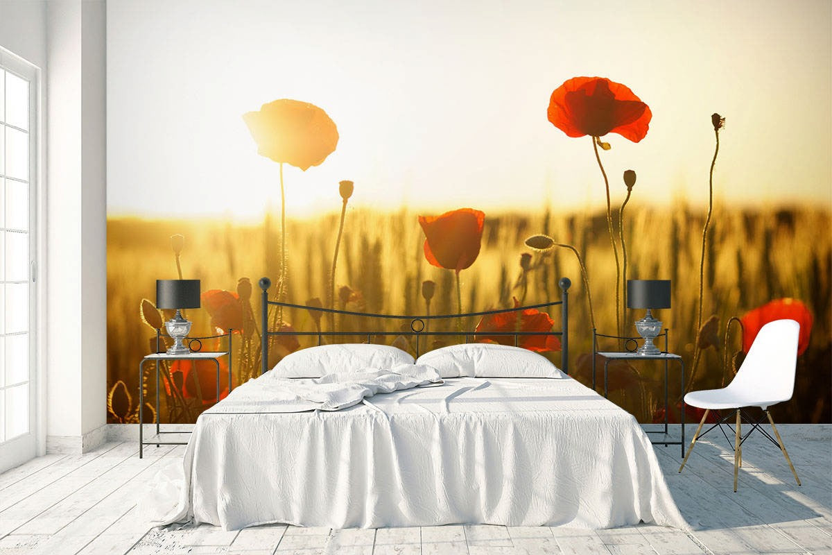 Poppies Floral Dutch Flowers Bright Wallpaper Mural,Self-Adhesive Peel And Stick 3D Wall Paper,Bedroom Designer Wall Decor