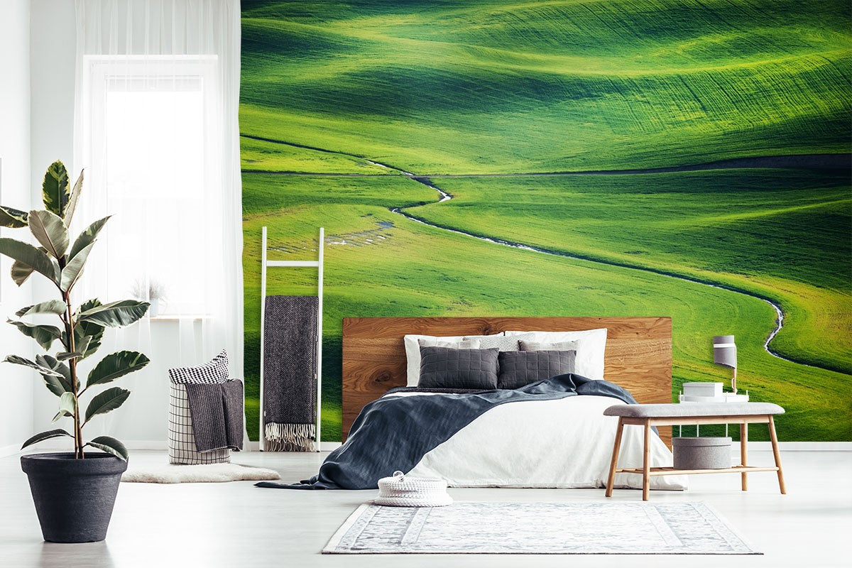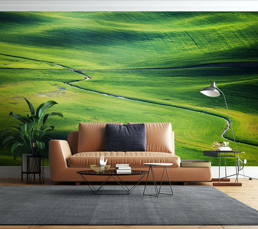 Prairie Nature Grass Green Wallpaper Mural,Self-Adhesive Peel And Stick 3D Wall Paper,Designer Removable Wall Decor