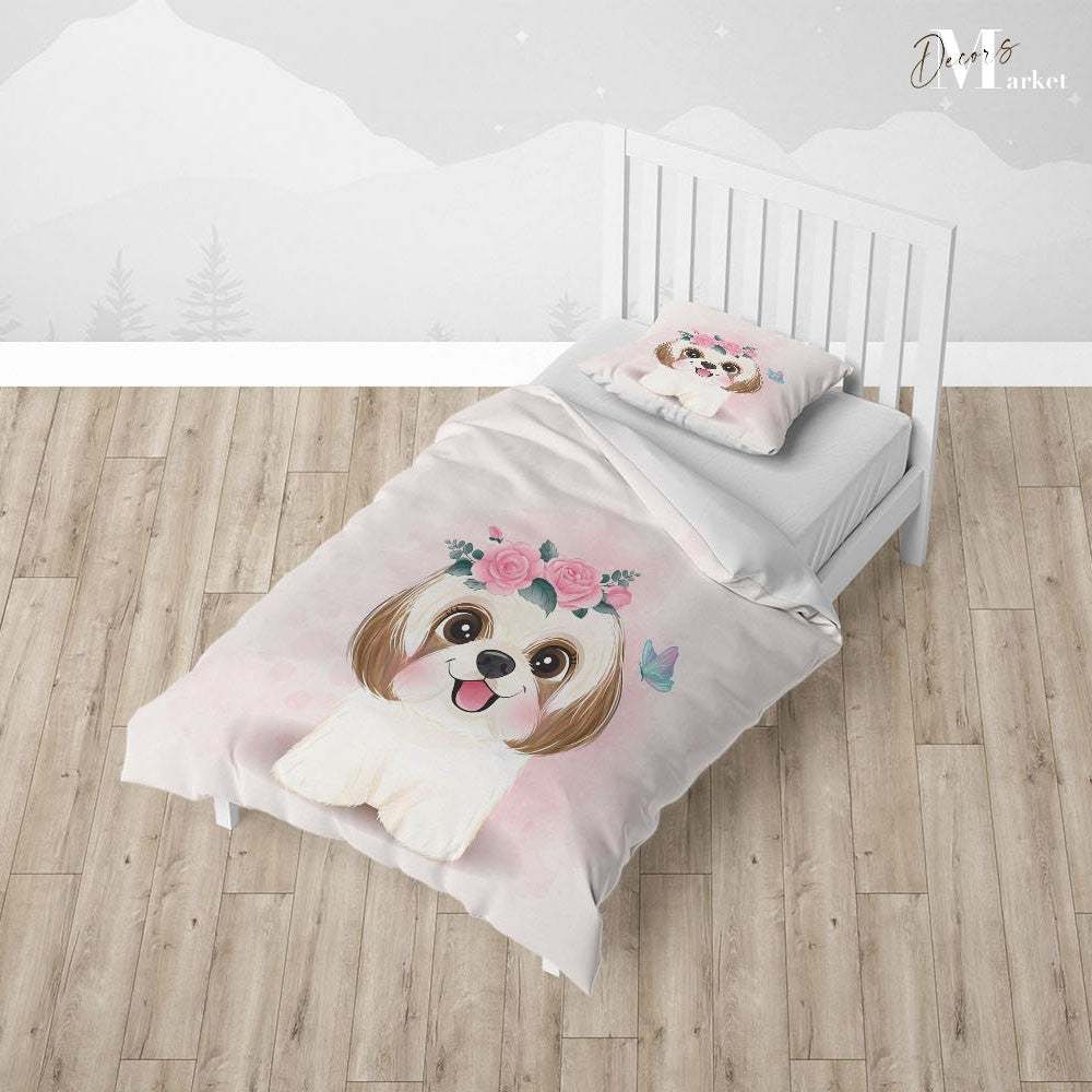 Prince Puppy Dog Duvet Cover Set w Pillow Cover, Creamy Kids Cartoon 3D Quilt Cover, Single Double Queen King Size Doona Cover