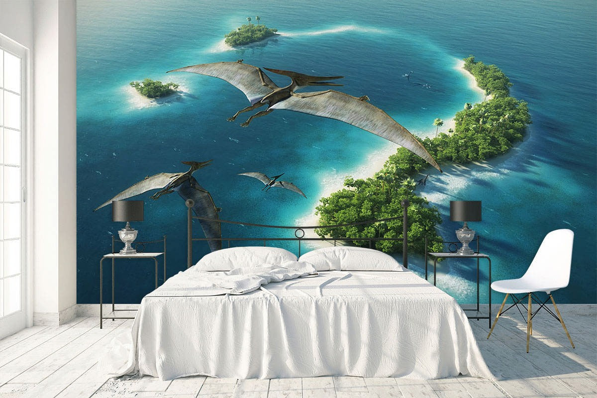 Pterosaur Dinosaur Fantasy Blue Wallpaper Mural,Self-Adhesive Peel And Stick 3D Wall Art,Australian Company Designer Wall Decor