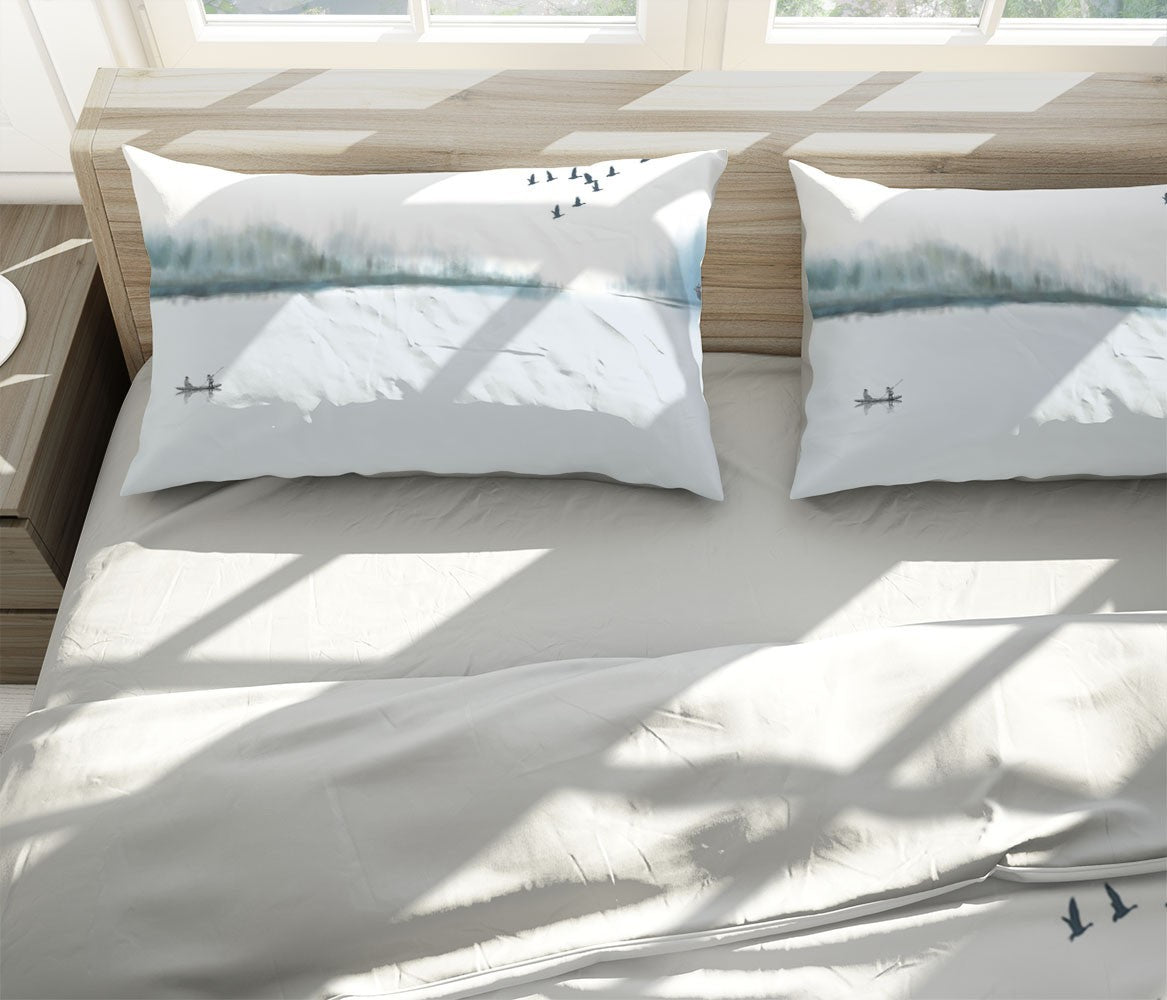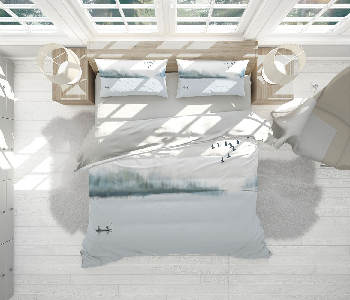 Punting Boat Duvet Cover Set W Pillow Cover, Gray Art Chinoiserie 3D Quilt Cover, Single Double Queen King Size Doona Cover