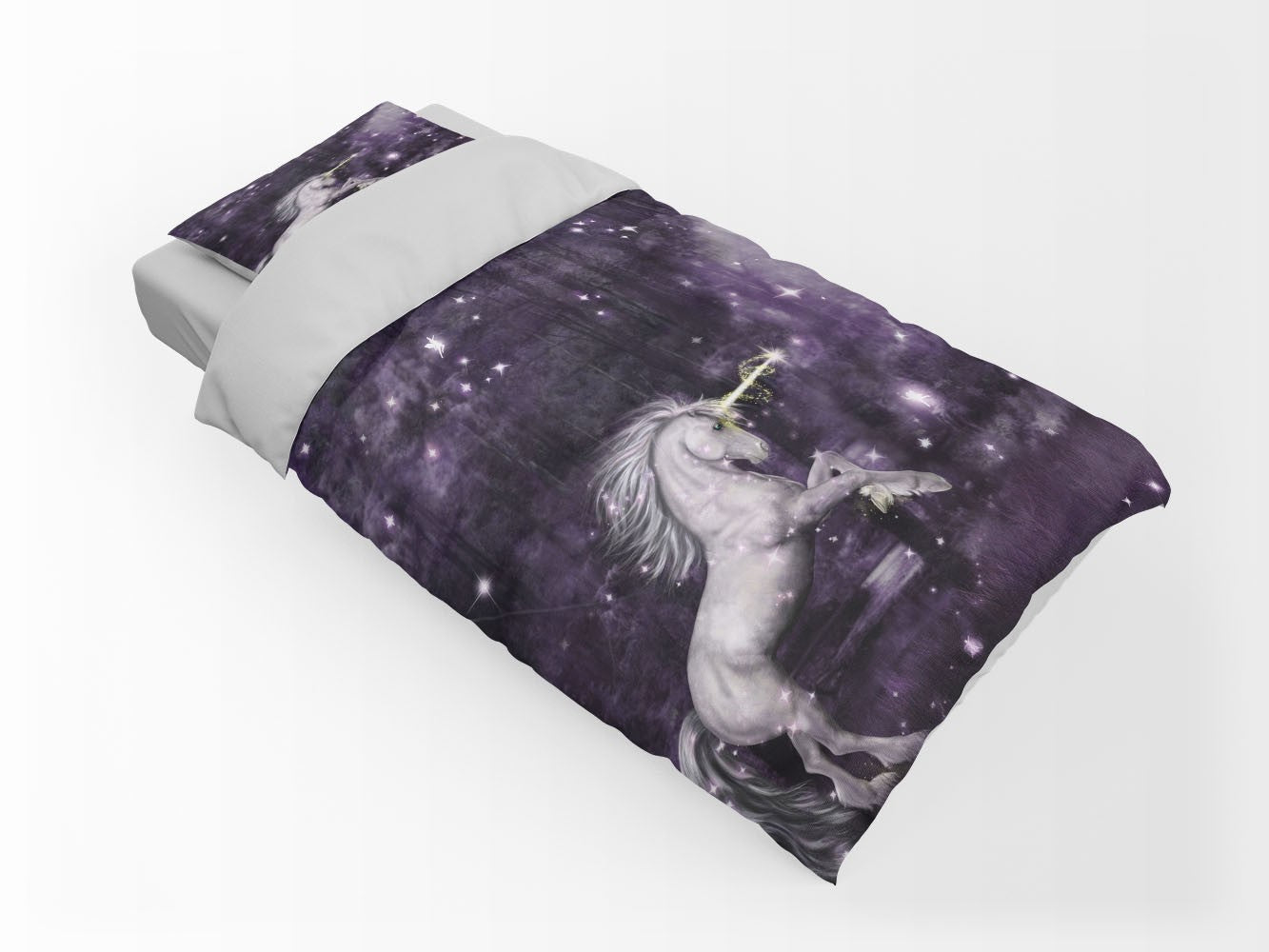Purple Unicorn Duvet Cover Set W Pillow Cover, Purple Kids Fantasy 3D Quilt Cover, Single Double Queen King Size Doona Cover