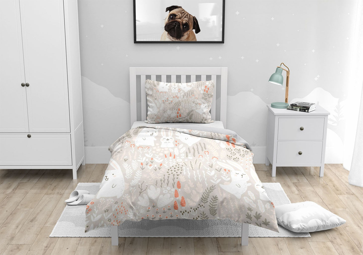 Rabbit Cute Pattern Duvet Cover Set w Pillowcases, Creamy Kids Animal 3D Quilt Cover, 3pc Single Double Queen King Size Doona Cover