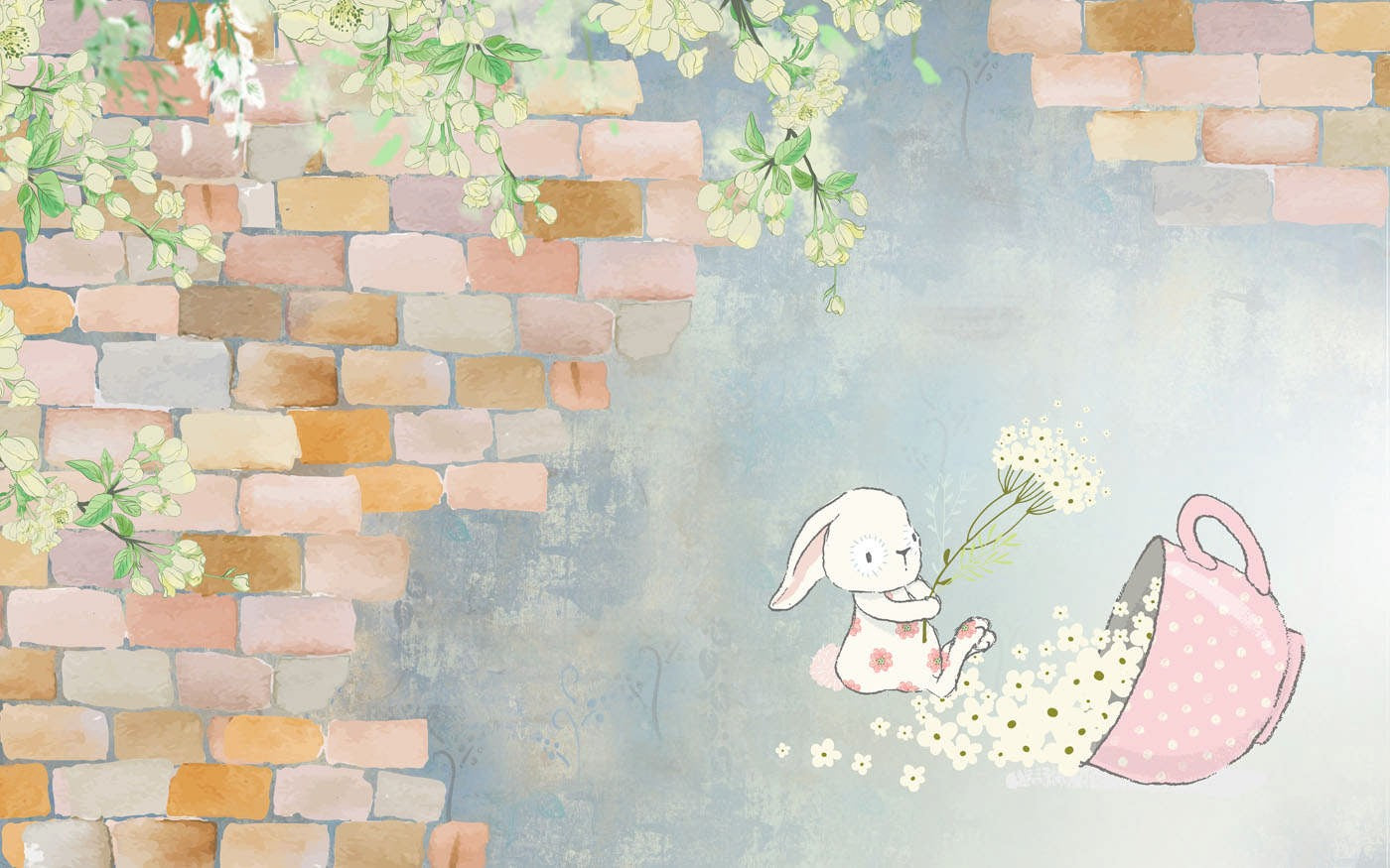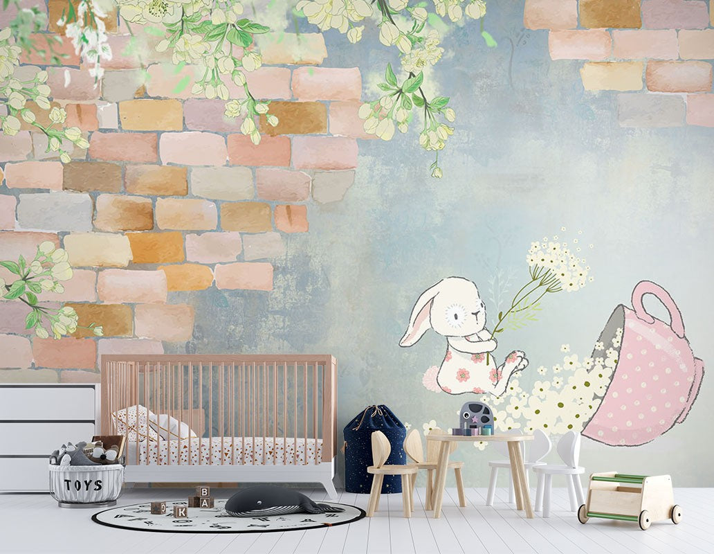 Rabbit Kids Cartoon Multicolour Wallpaper Mural,Self-Adhesive Peel And Stick 3D Wall Decal,Bedroom Designer Wall Decor