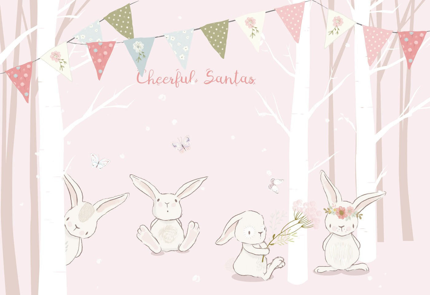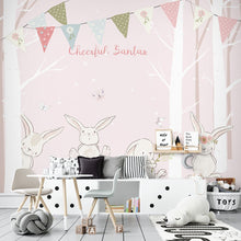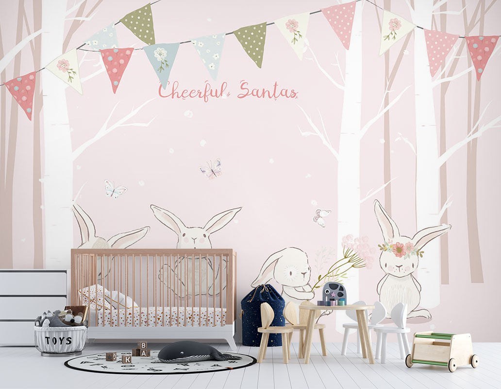 Rabbit Kids Cartoon Pink Wallpaper Mural,Self-Adhesive Peel And Stick 3D Wall Paper,Bedroom Removable Wall Decor